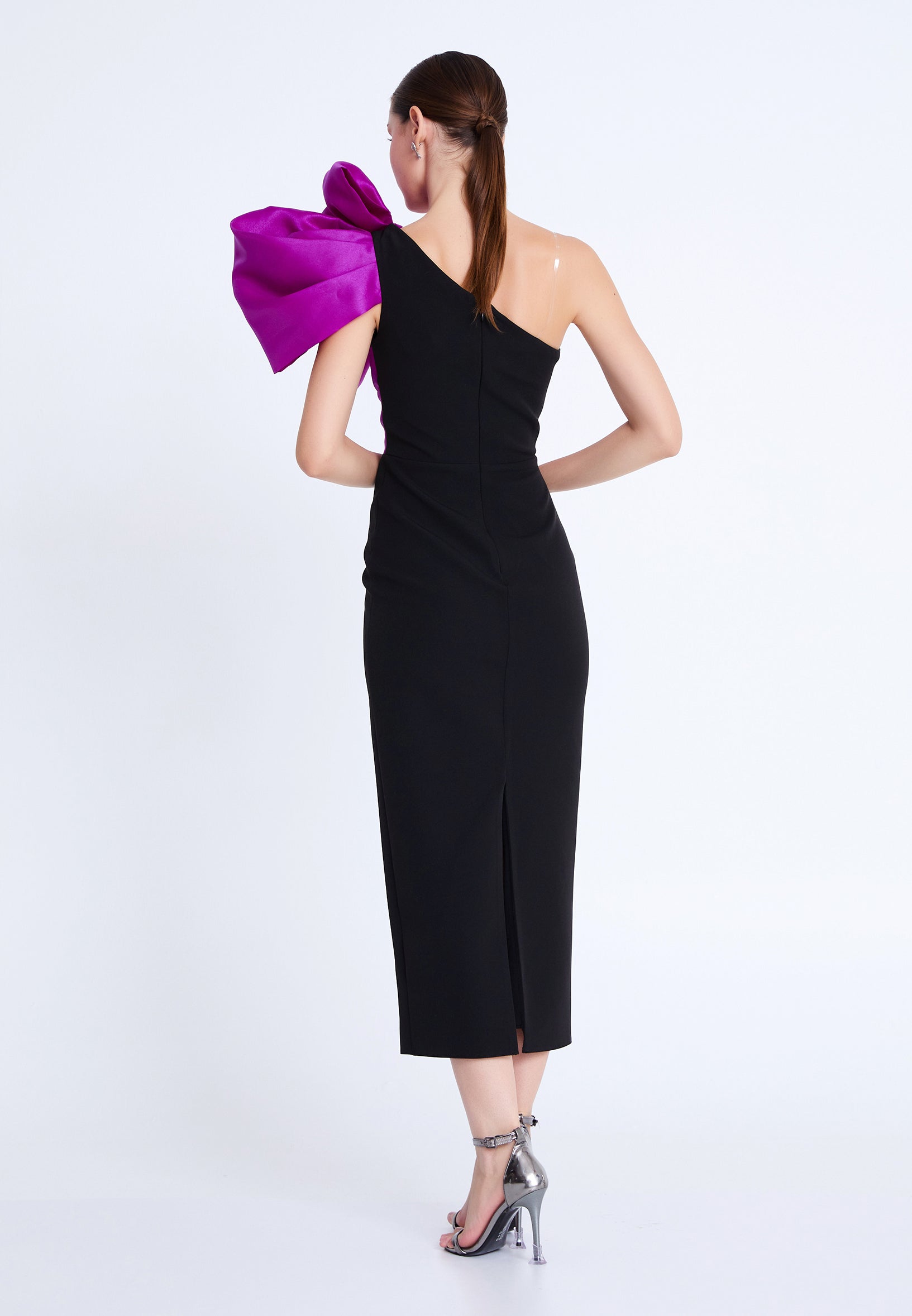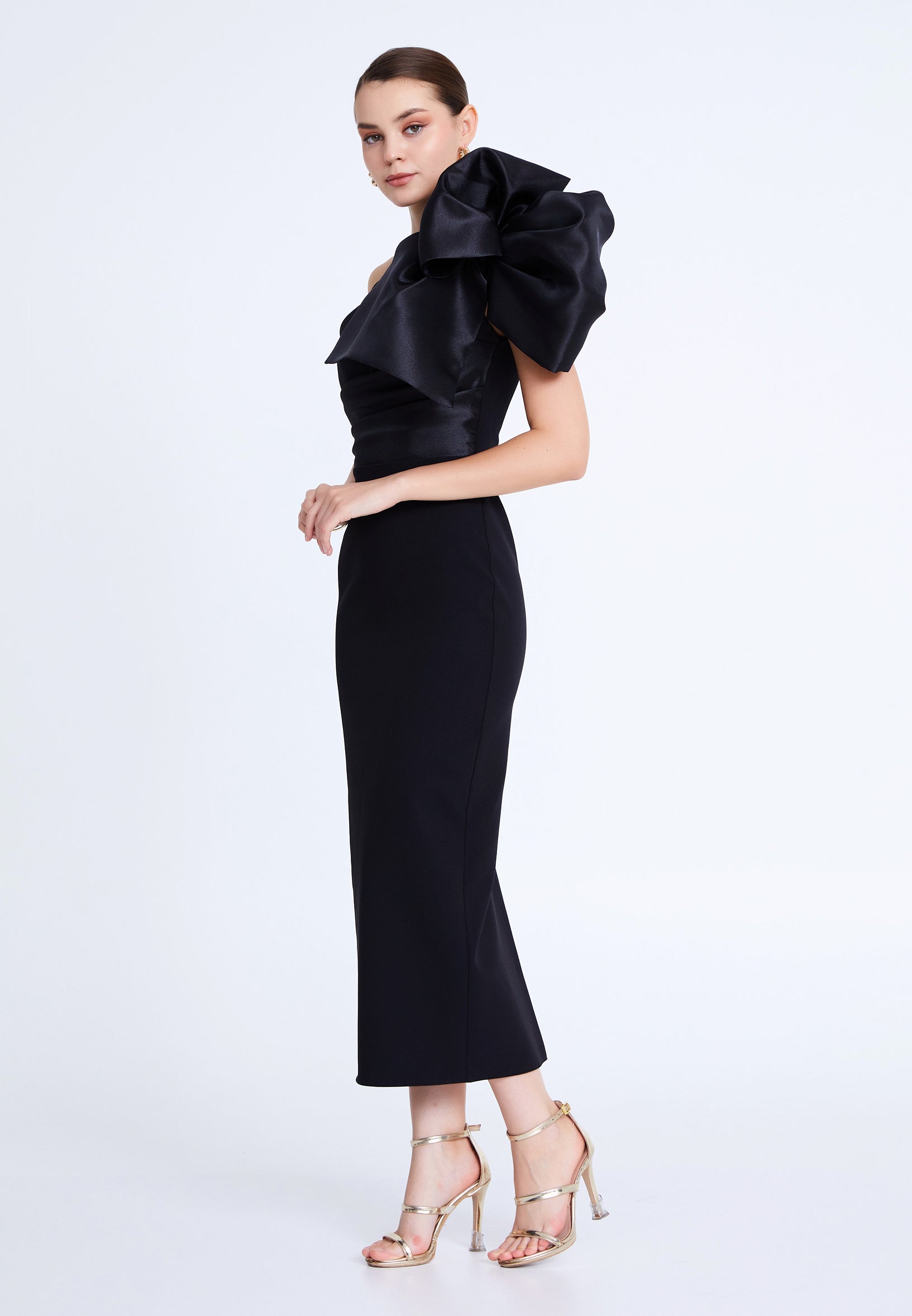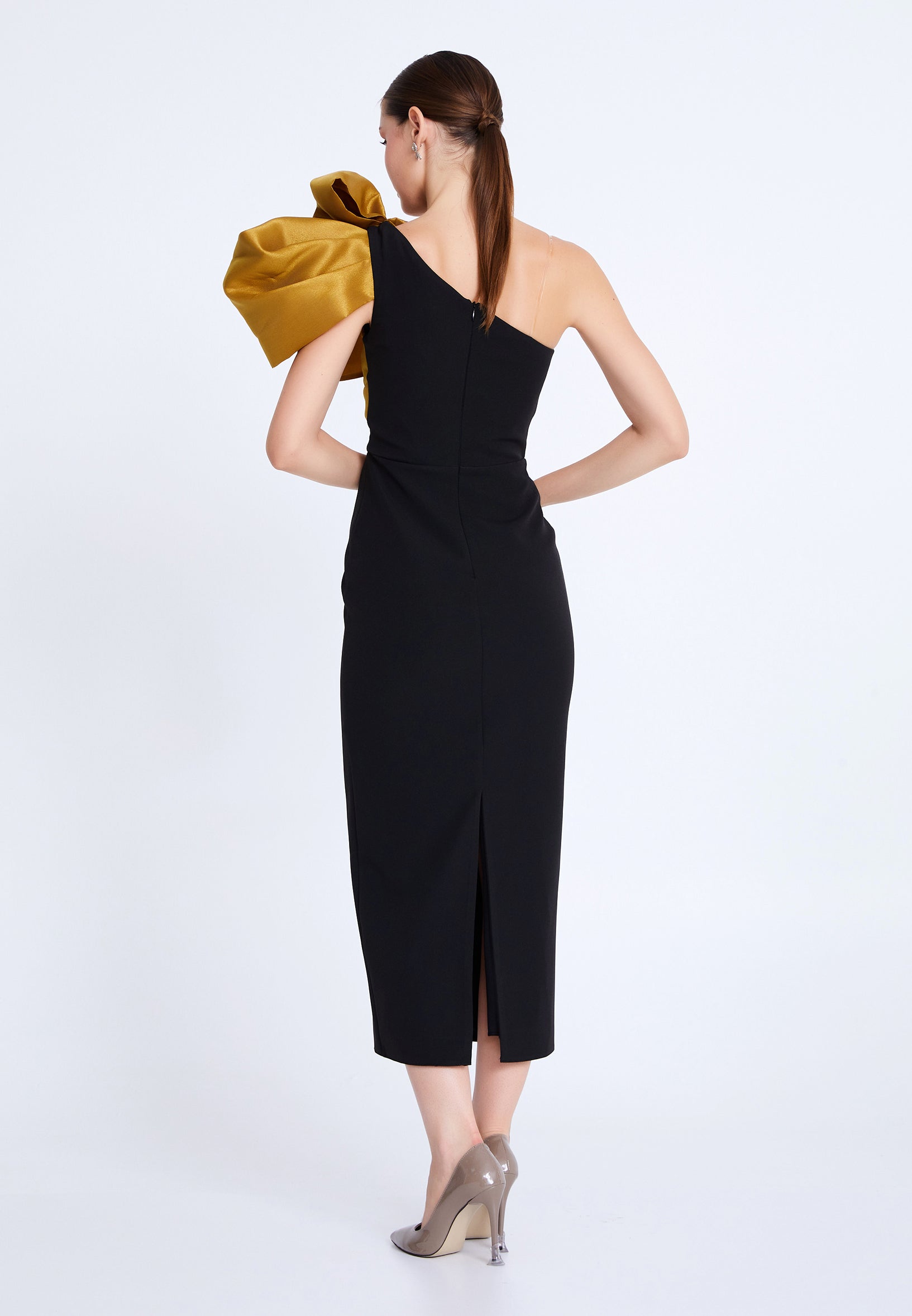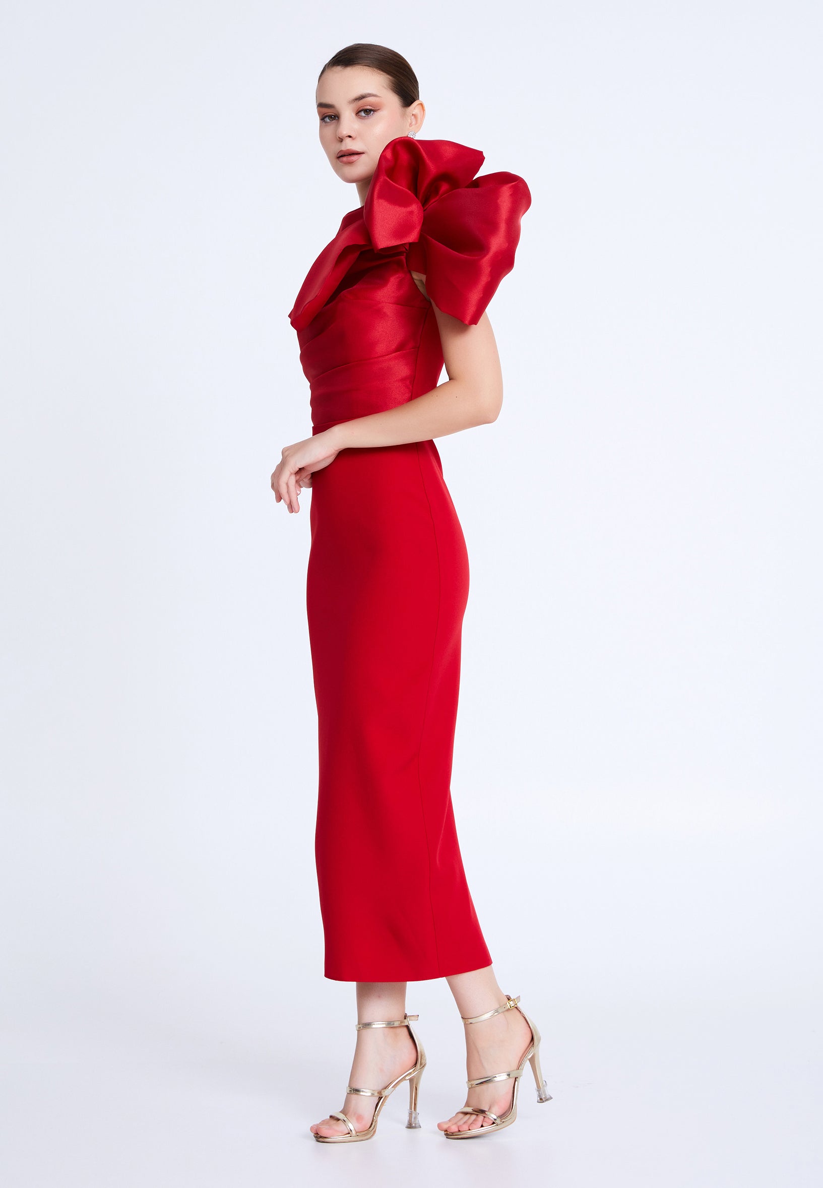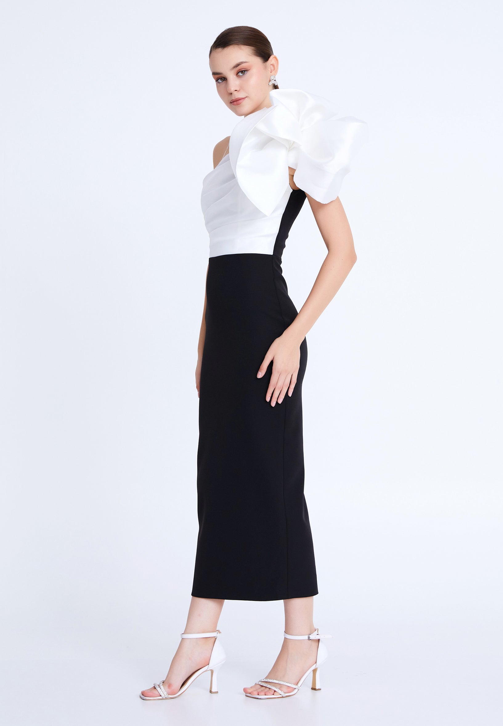 One Shoulder Midi Viscose Column Regular Evening Dress hot8423 Features