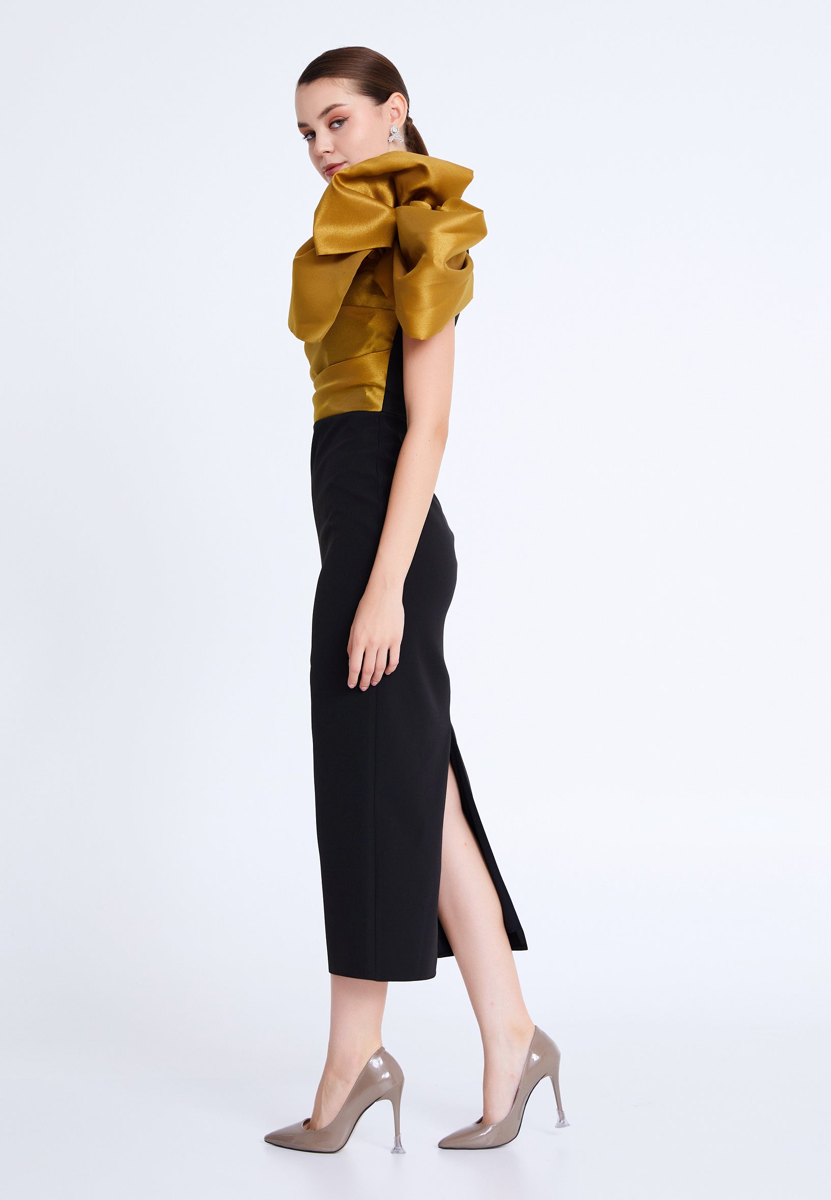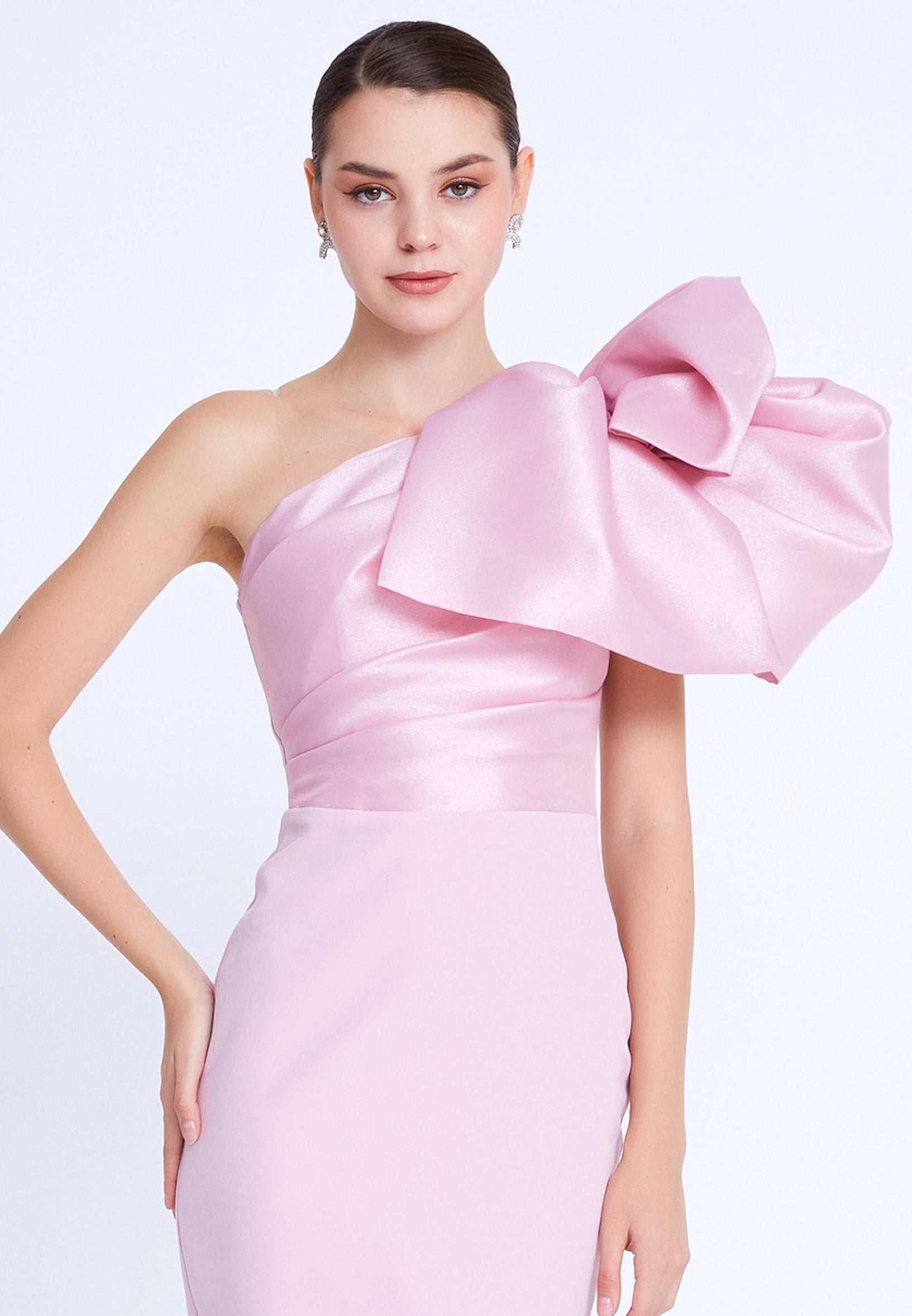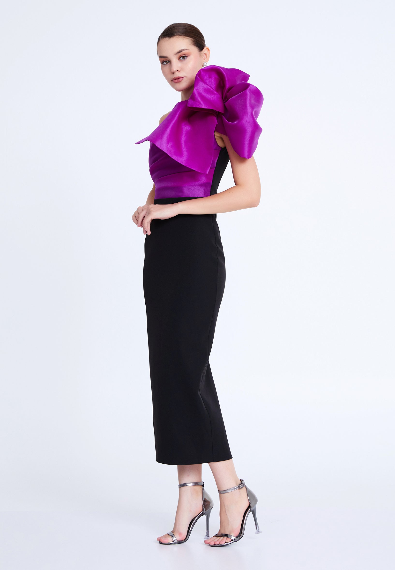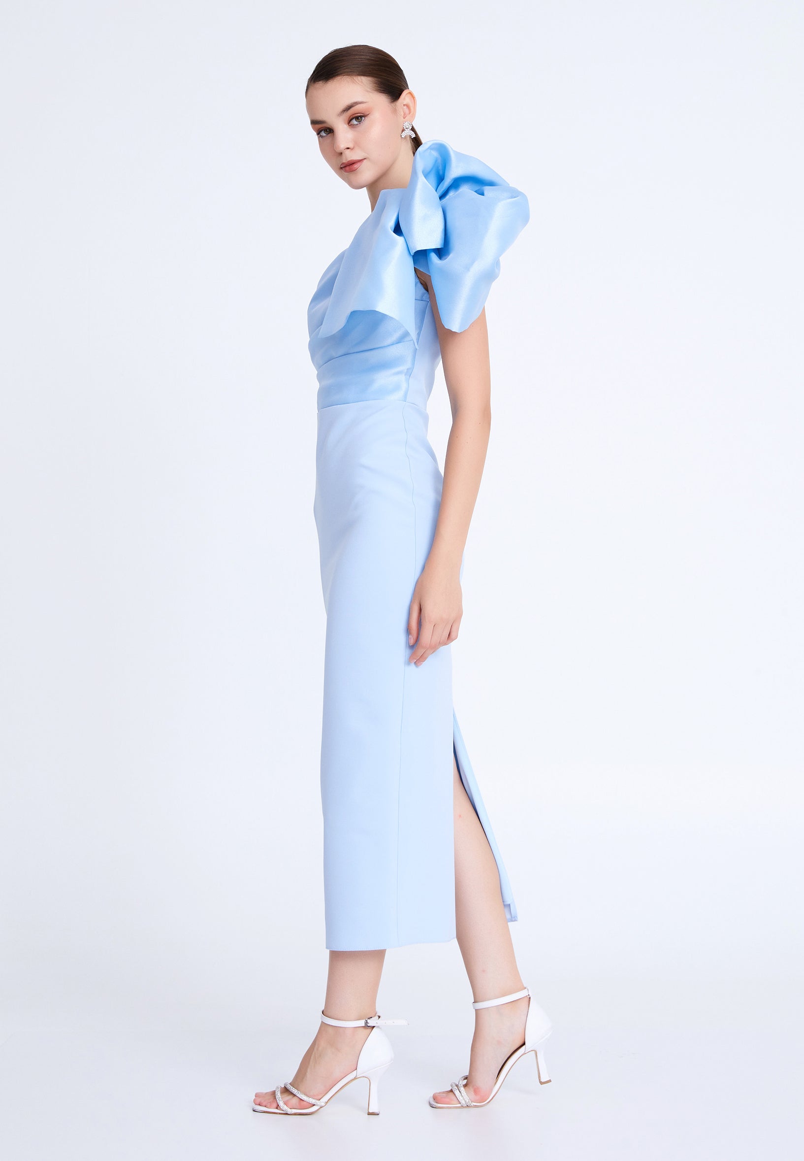 One Shoulder Midi Viscose Column Regular Evening Dress hot8423 Features