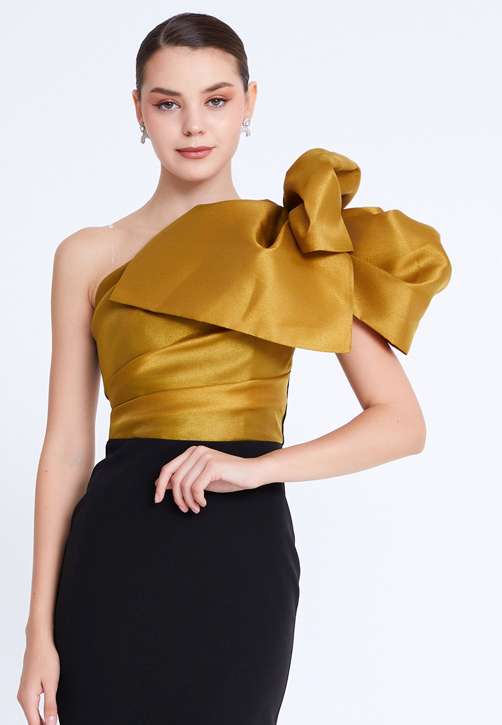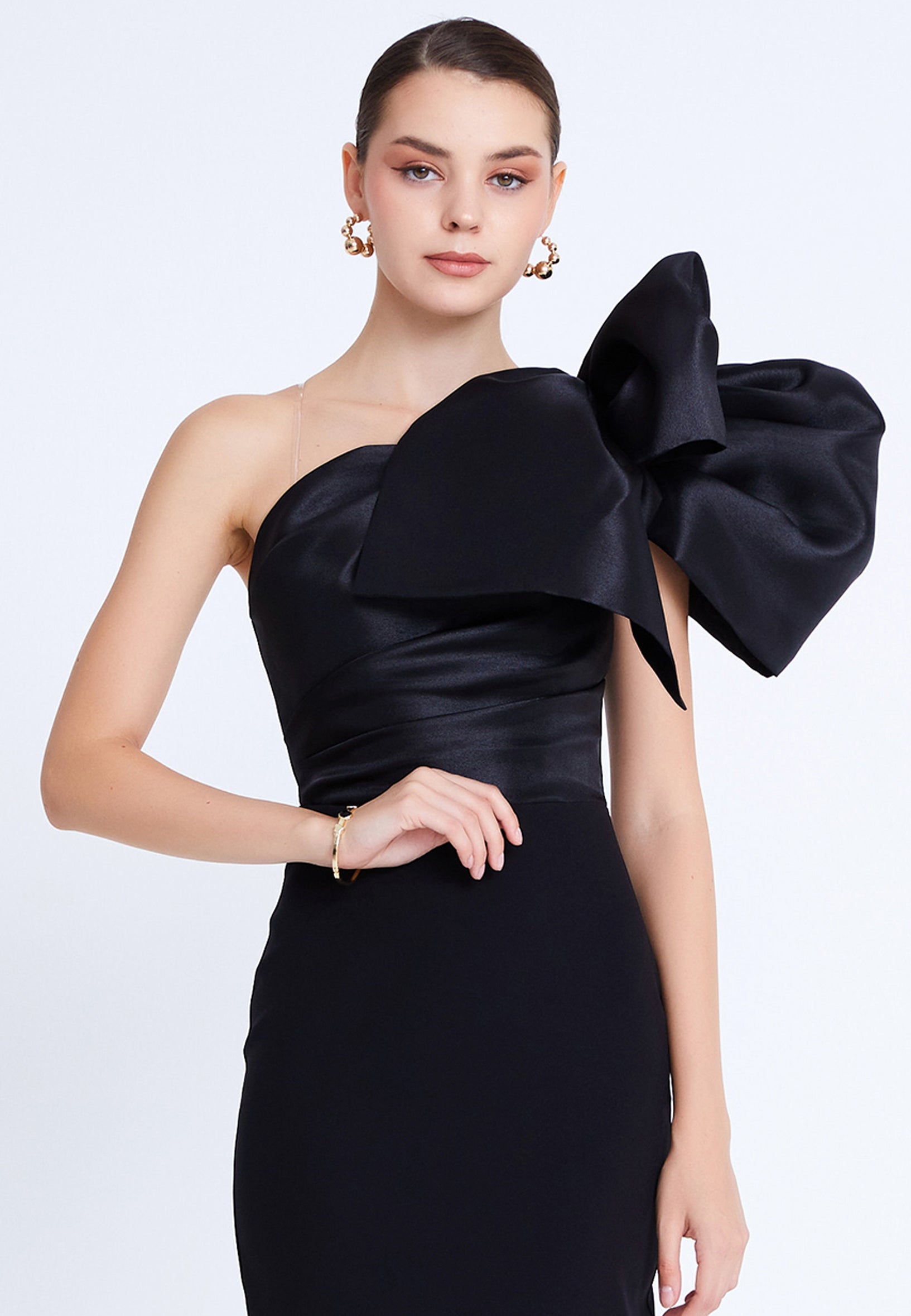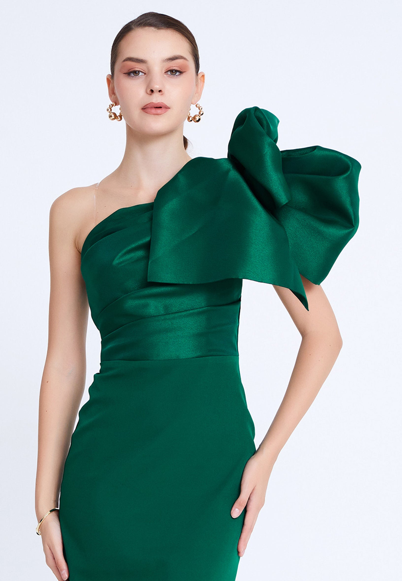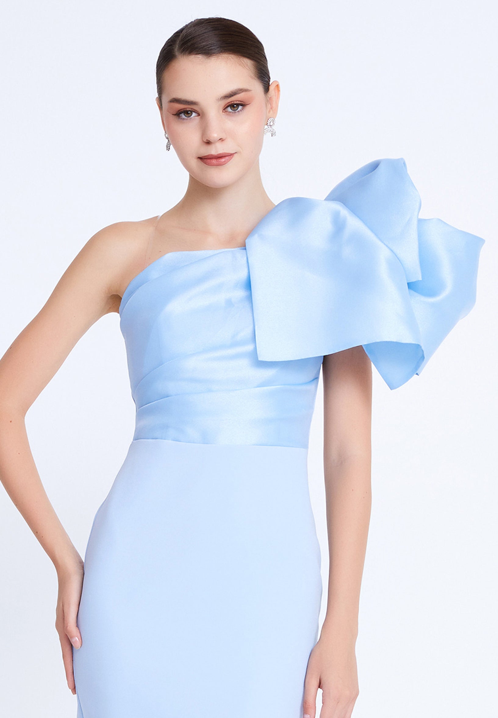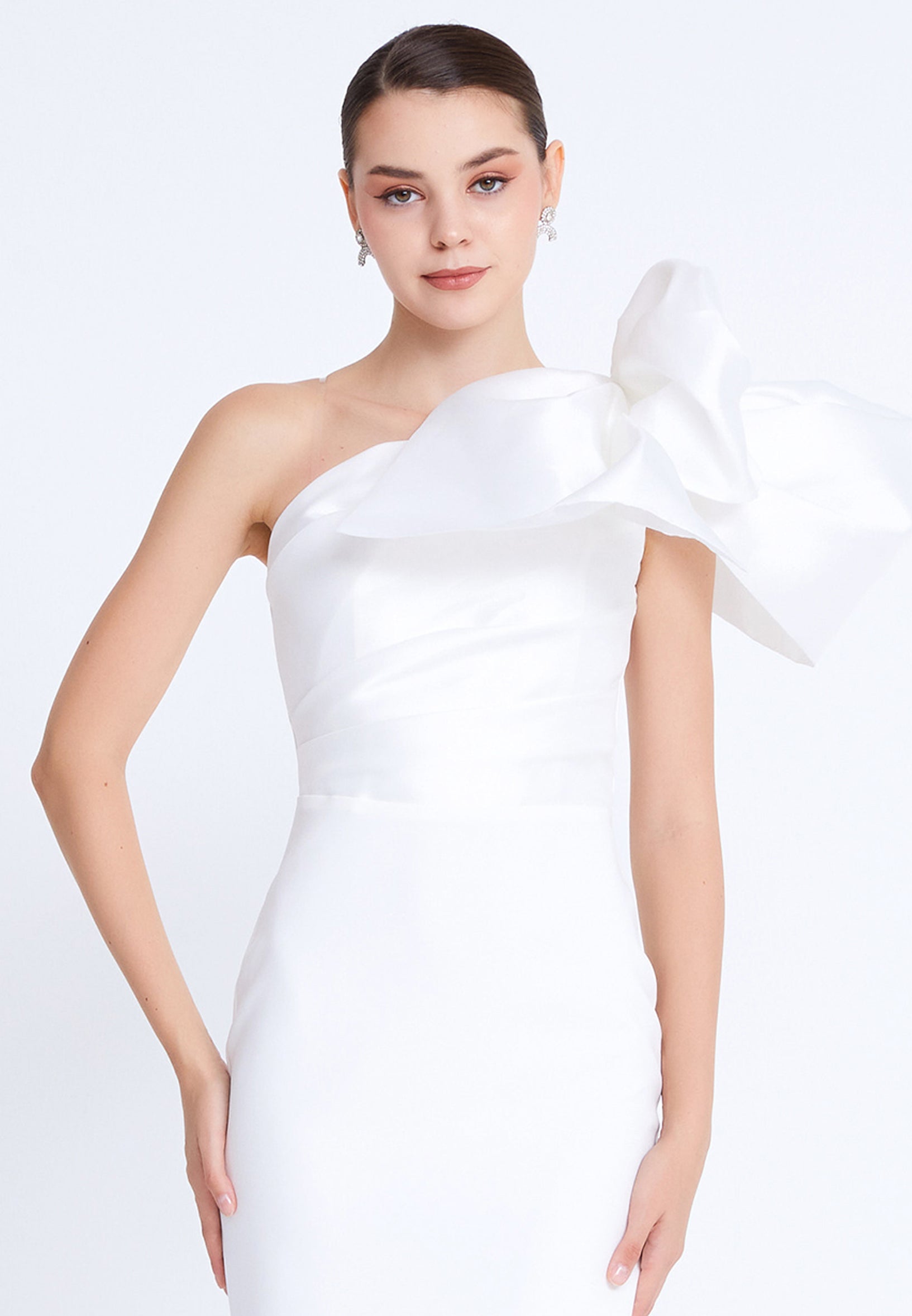 One Shoulder Midi Viscose Column Regular Evening Dress hot8423 Features