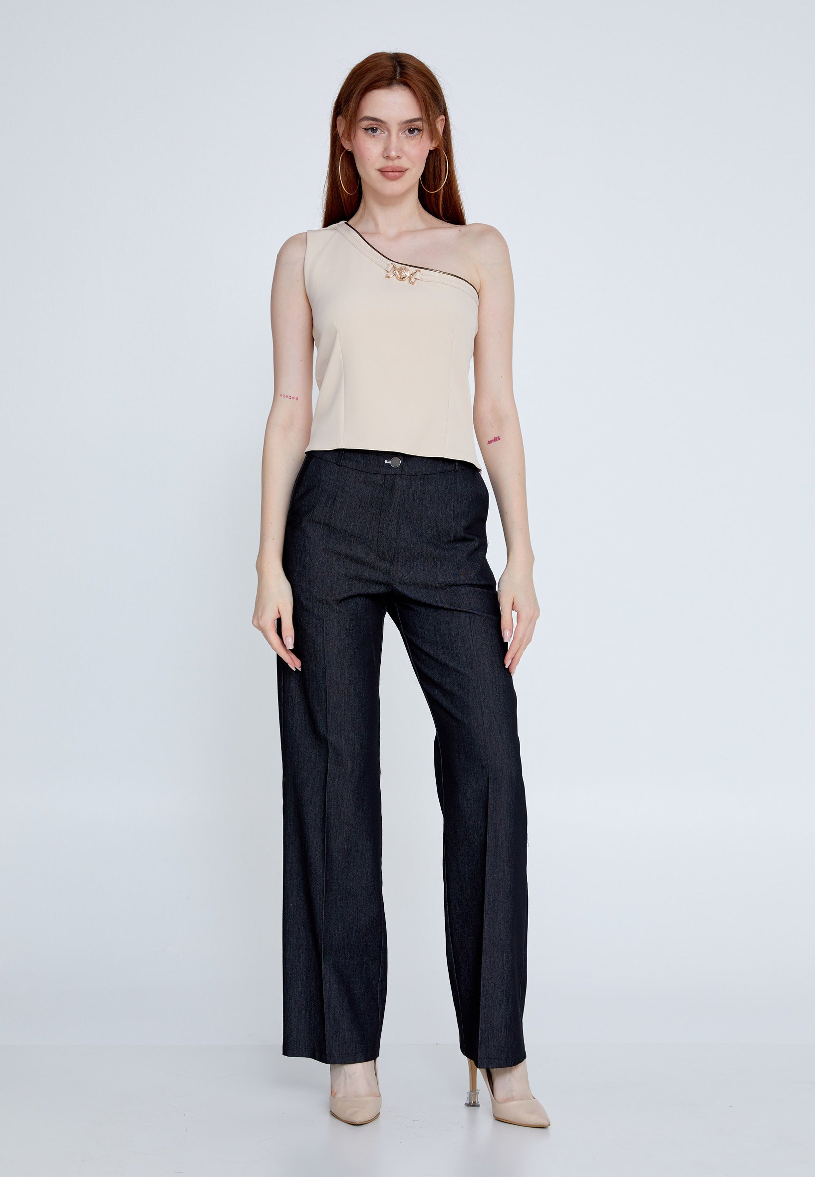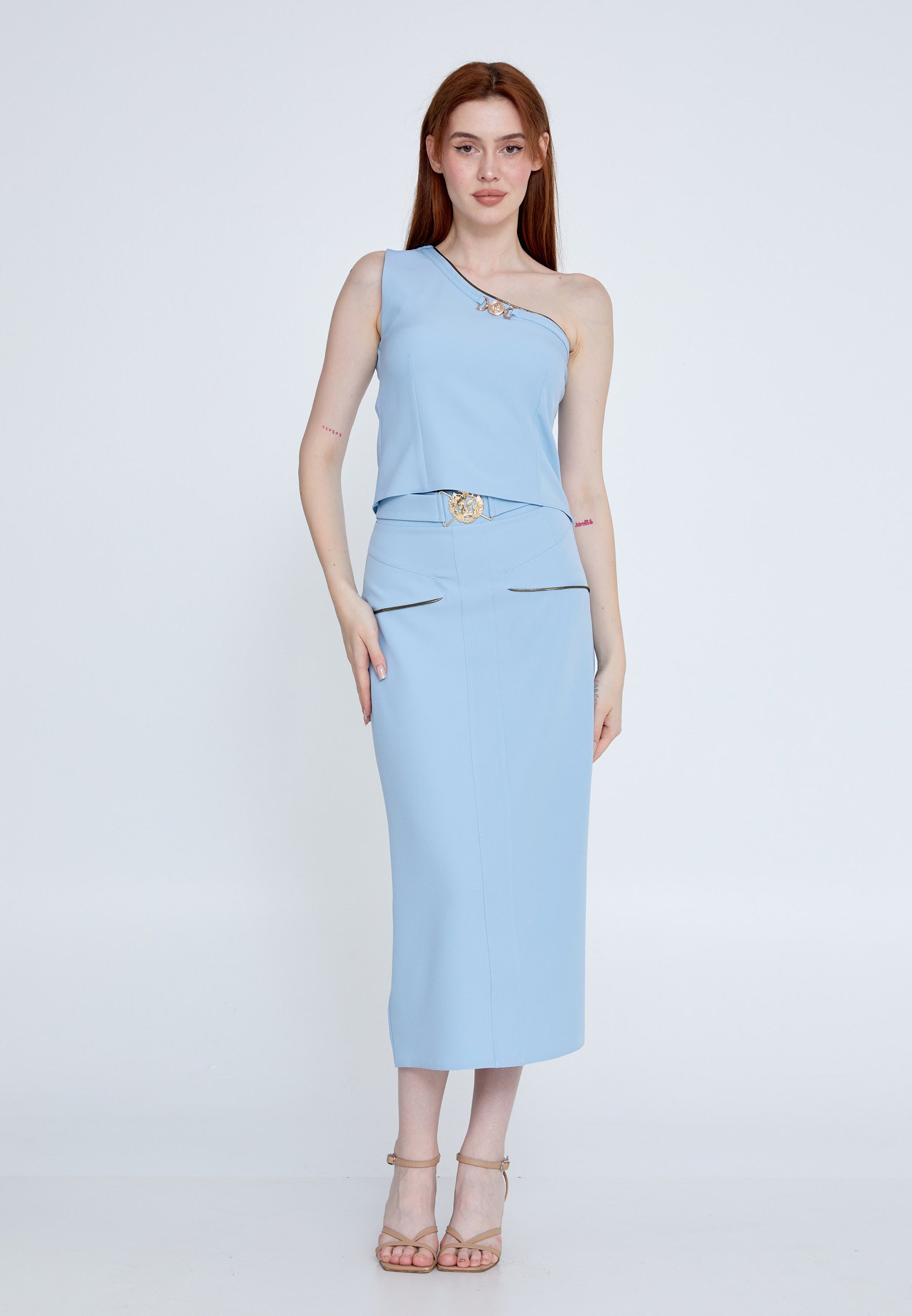 One Shoulder Solid Color Regular Blouse air9651 Features