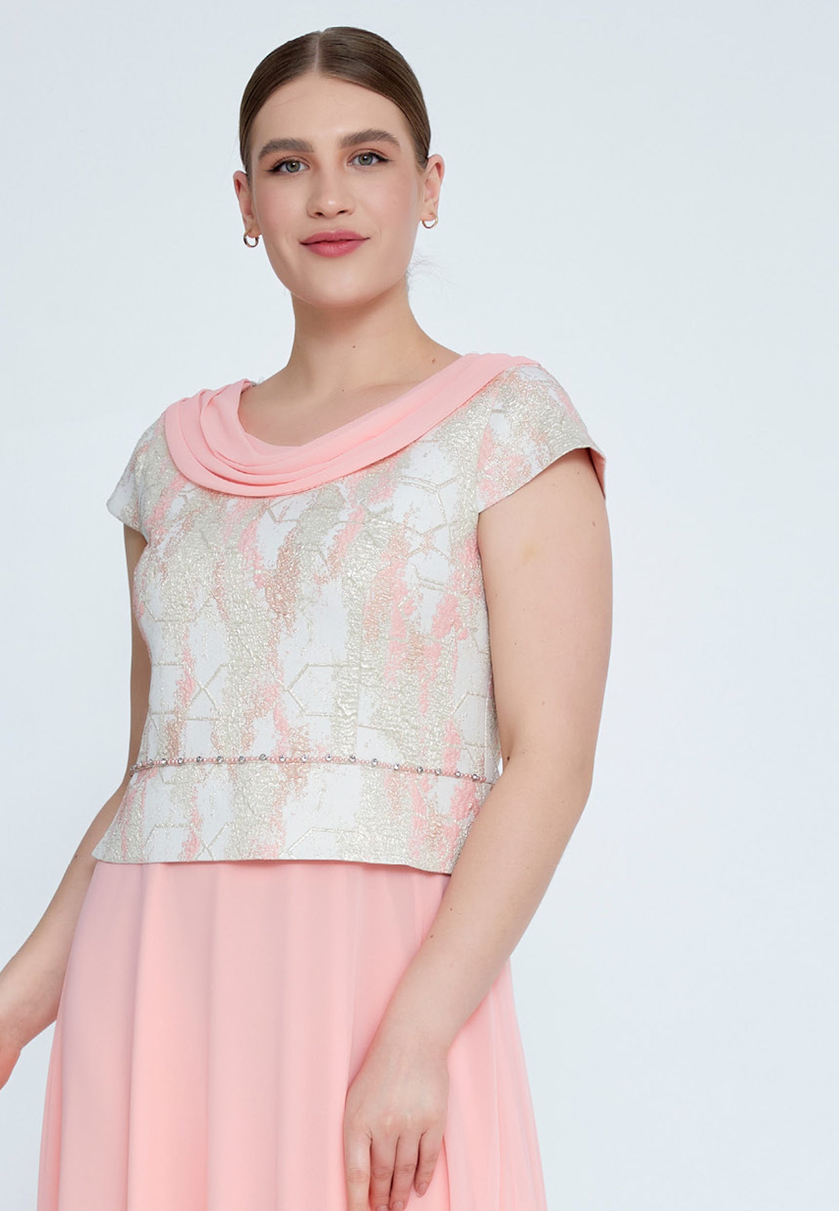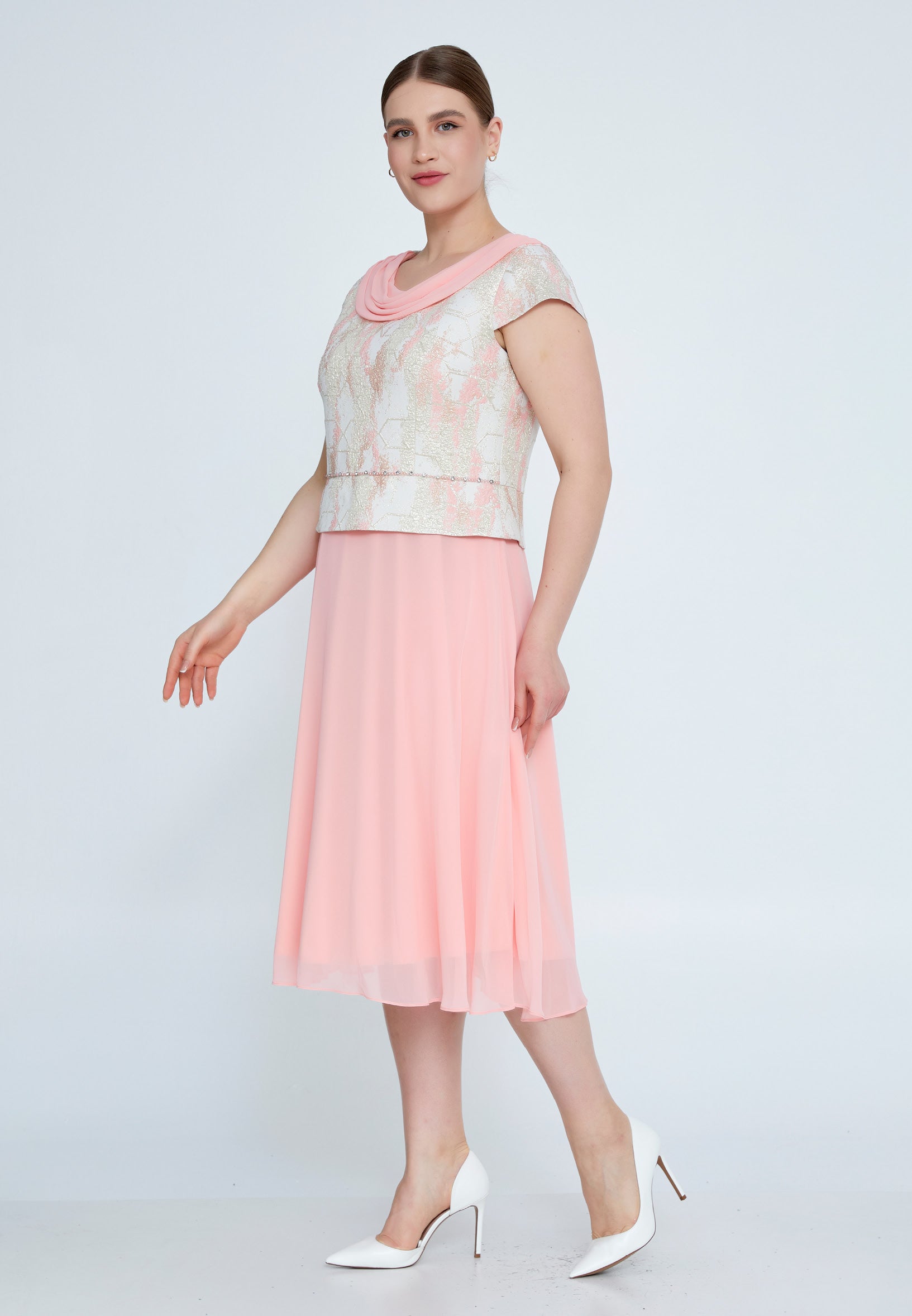 Short Sleeve Midi Chiffon Column Plus Size Casual Dress nsm23y2188-1 Features