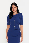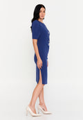 Short Sleeve Midi Viscose Column Regular Evening Dress ris25144