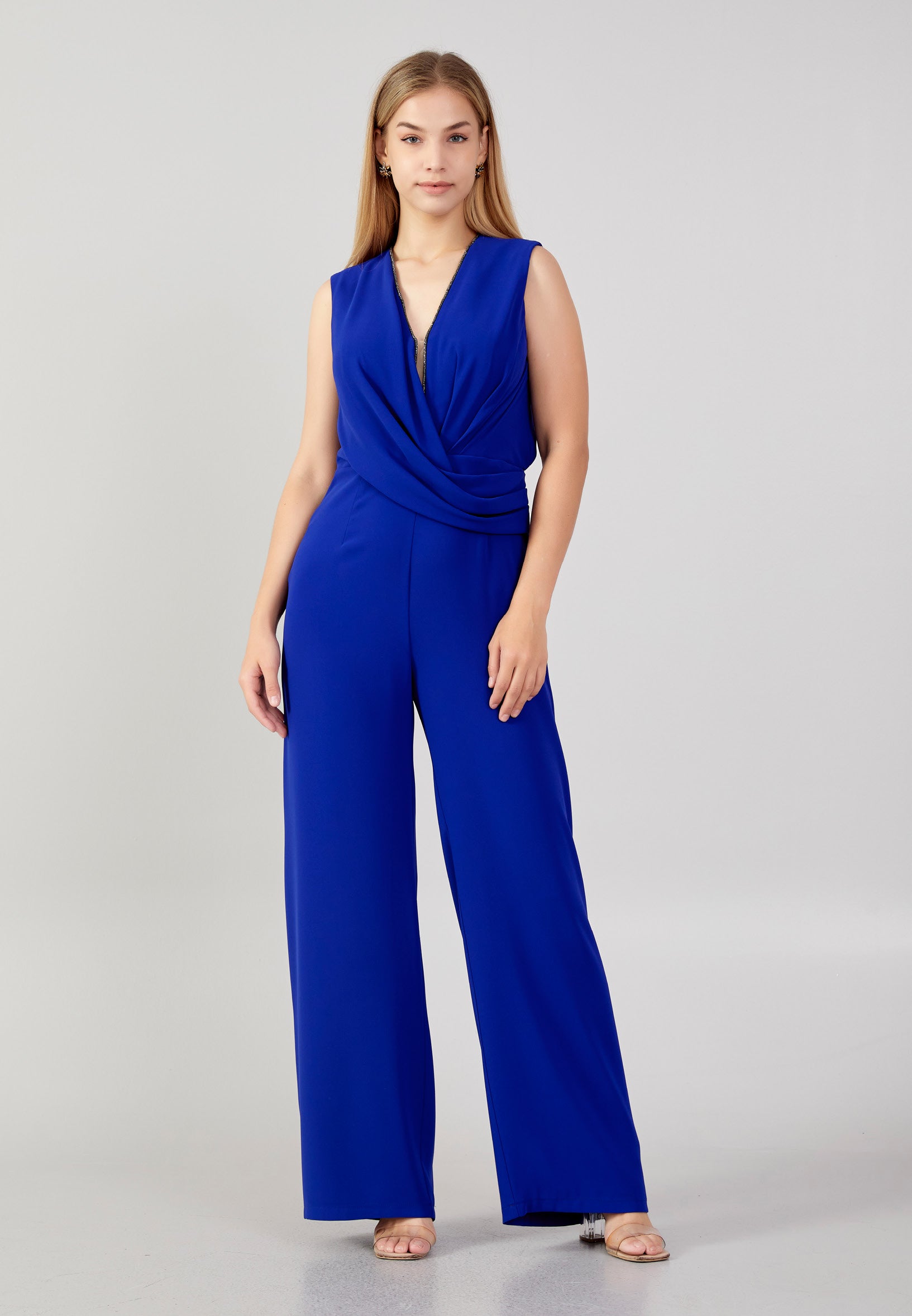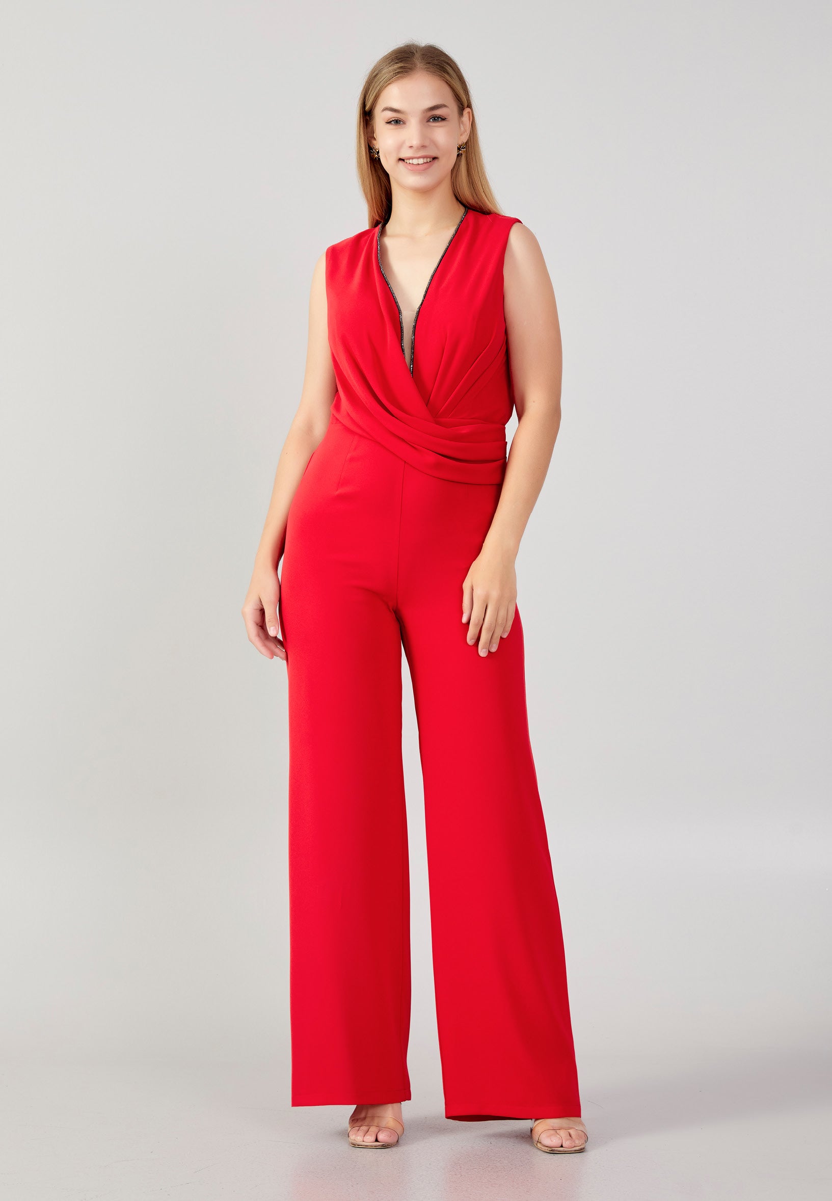 Sleeveless Crepe Regular Fit Plus Size Evening Jumpsuit srf8153-1 Features