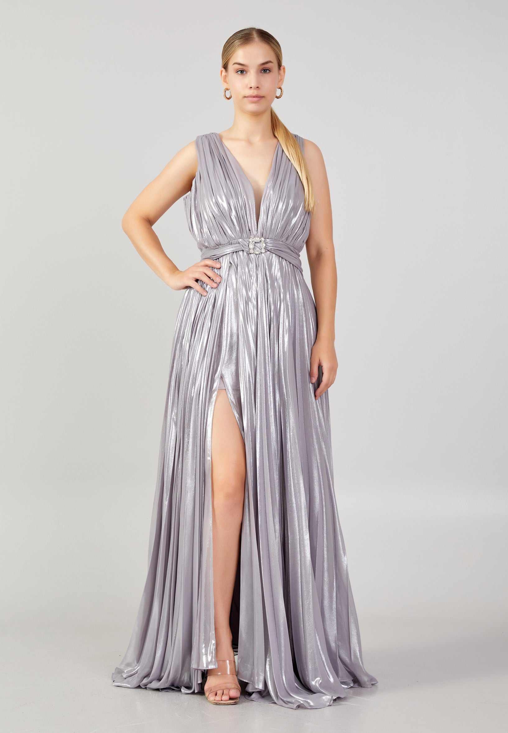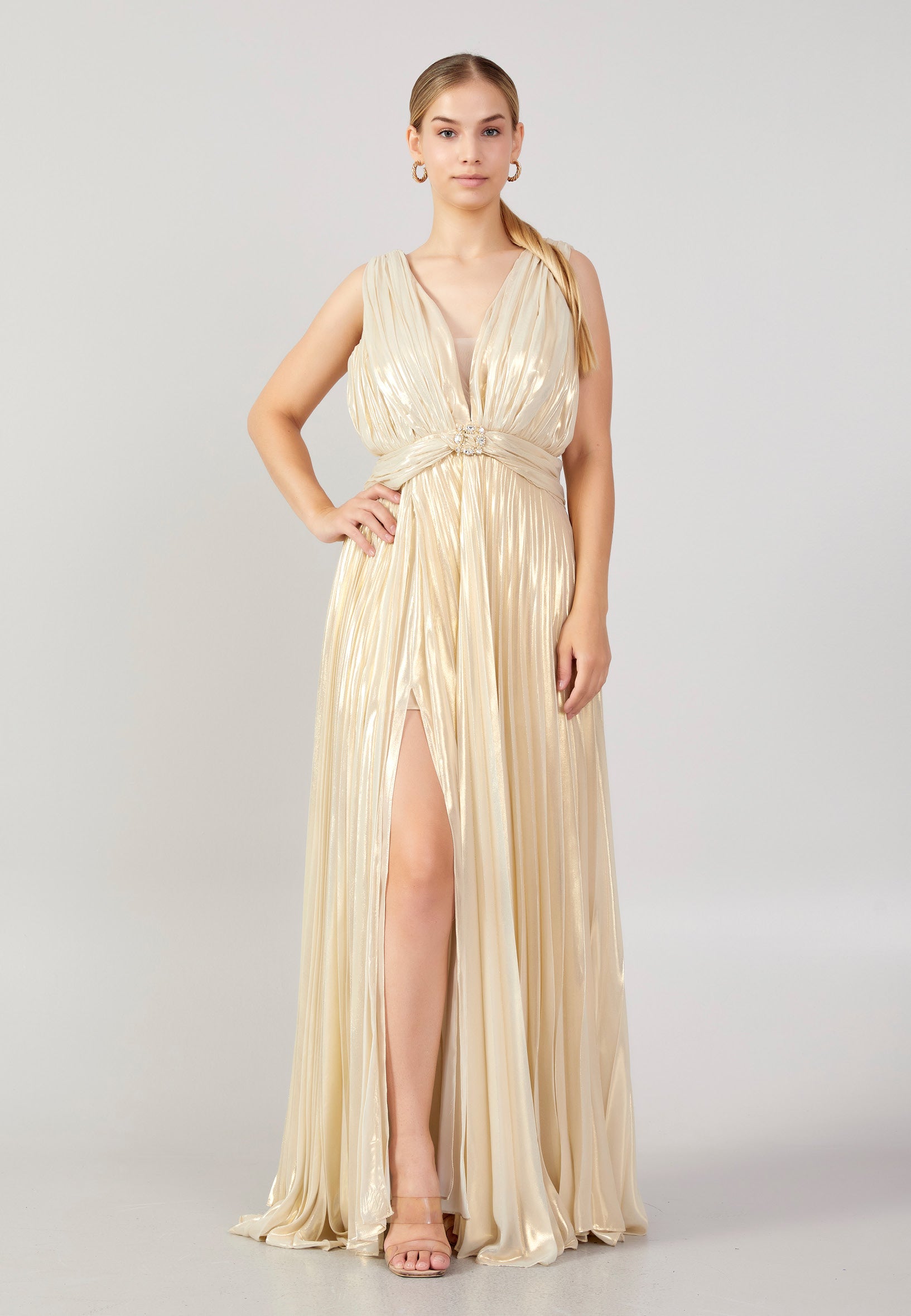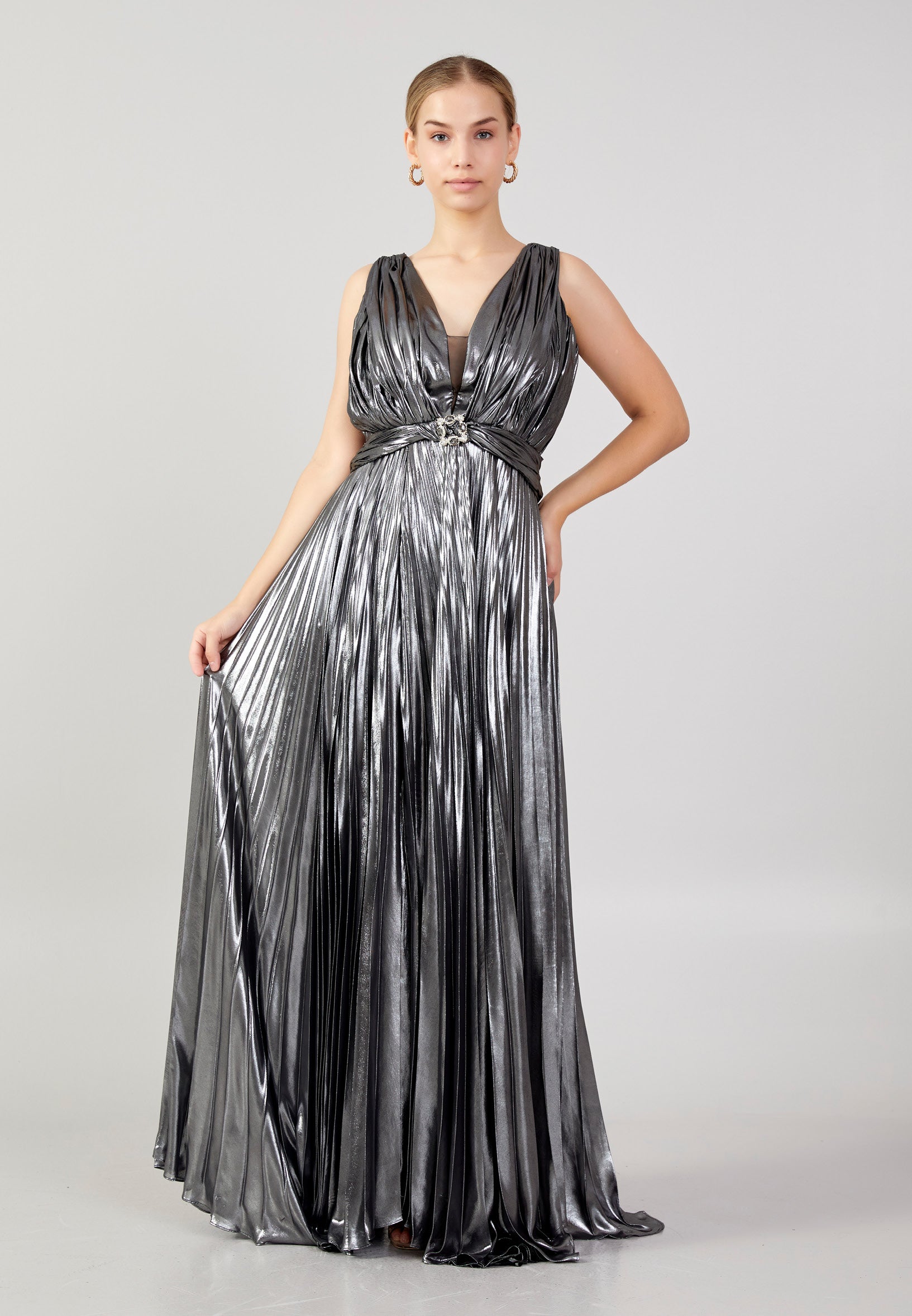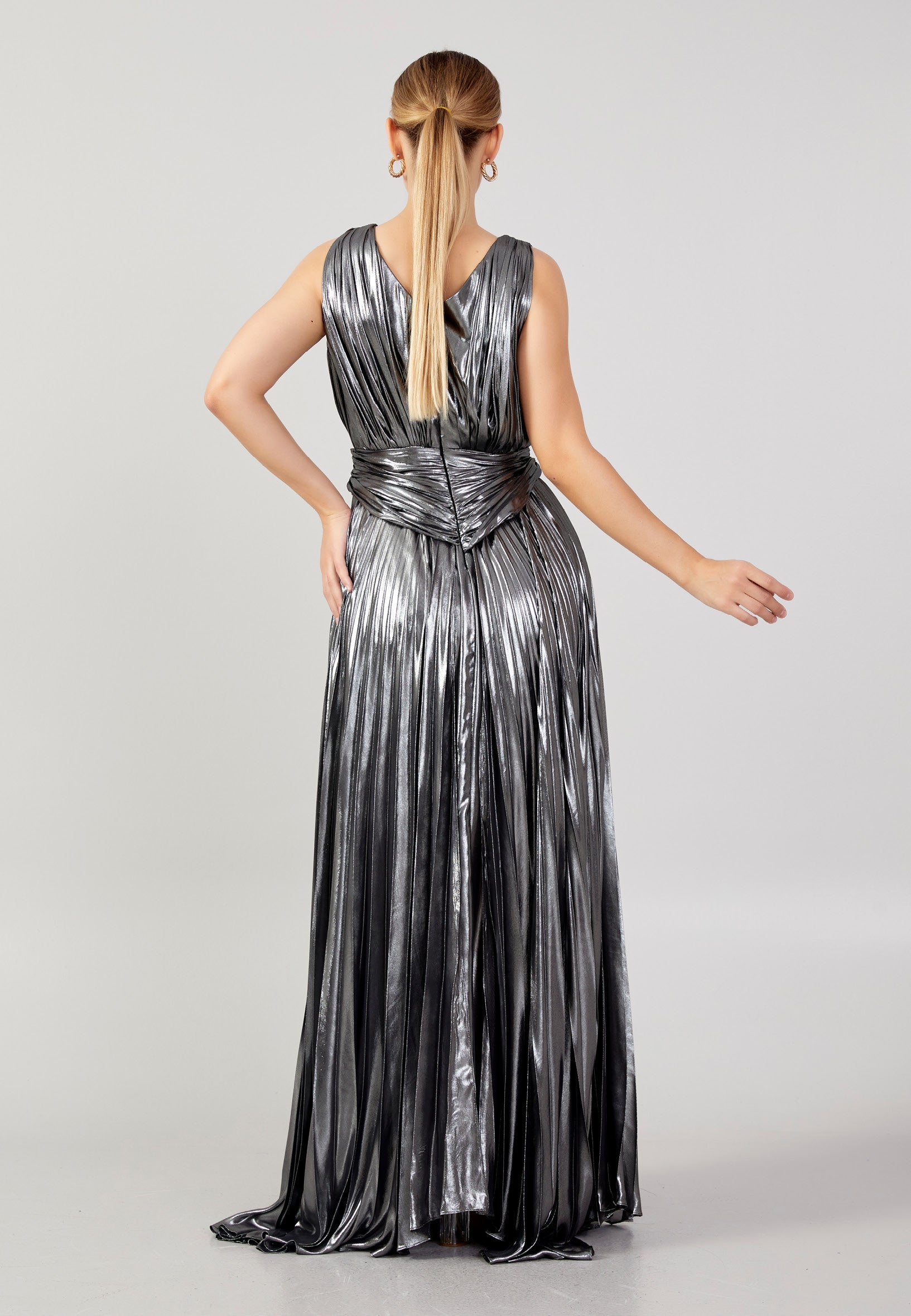 Sleeveless Maxi Chiffon Column Plus Size Evening Dress mtn22101-1 Features