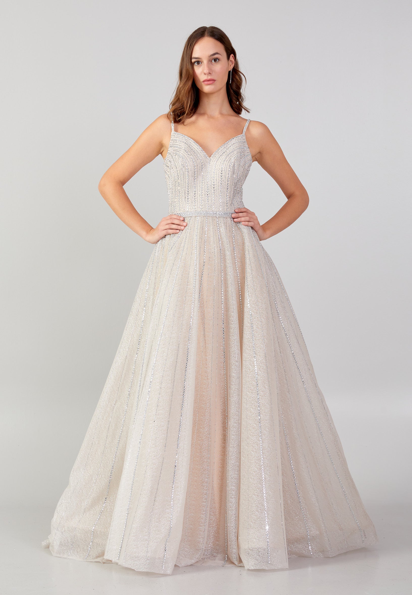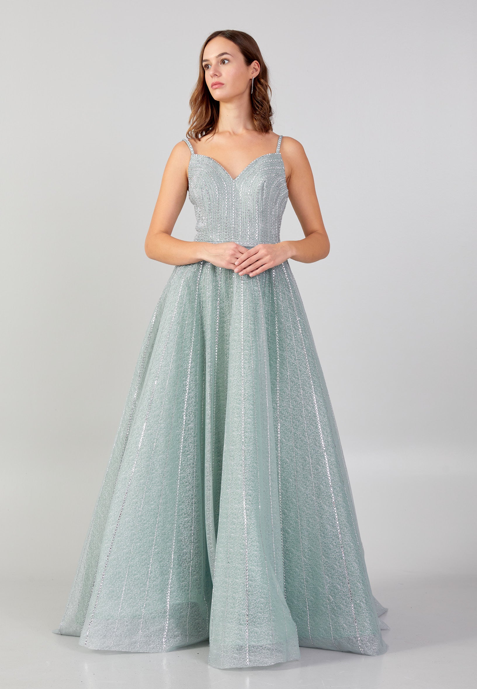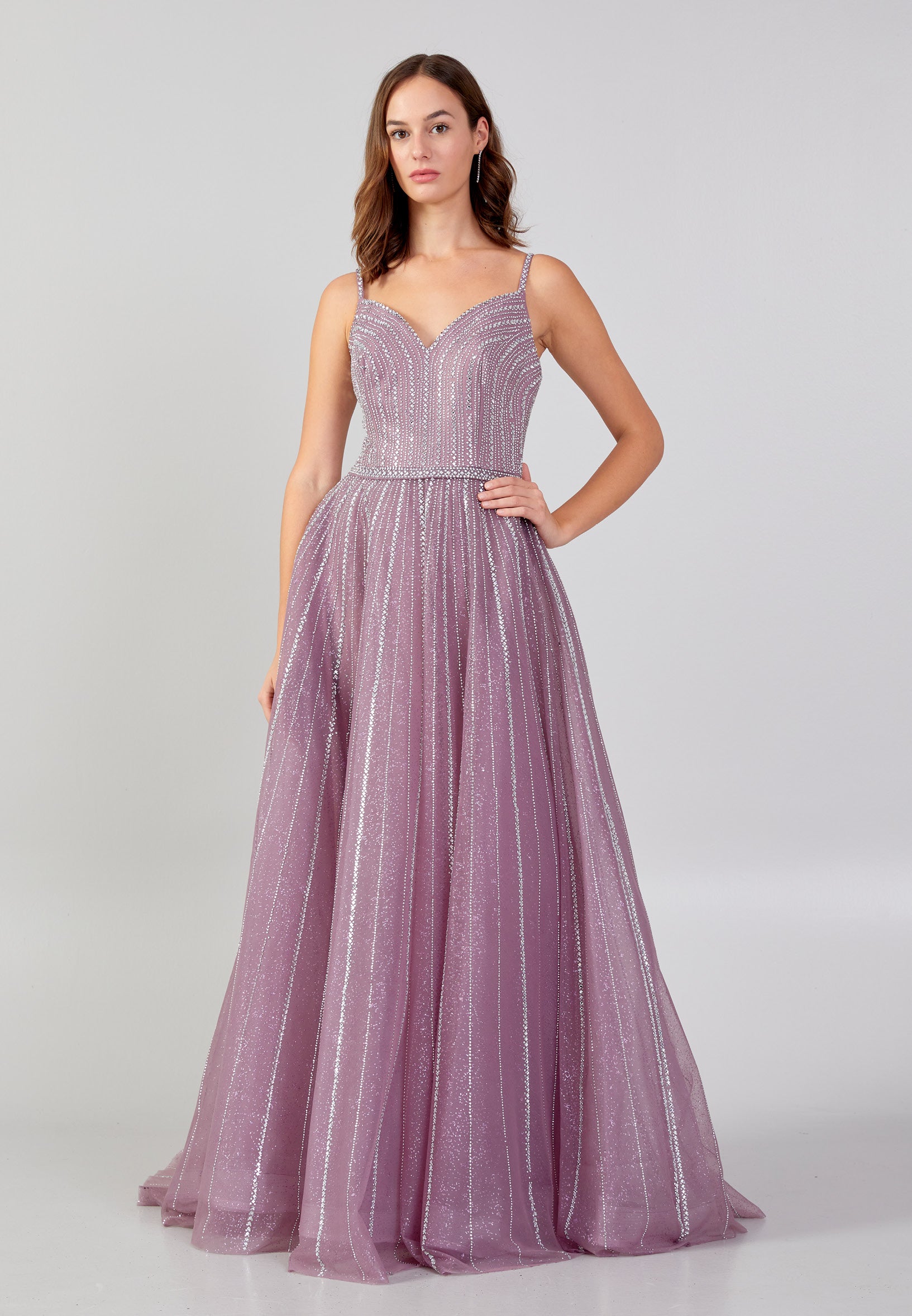 Sleeveless Maxi Tulle A - Line Regular Prom Dress ari4088