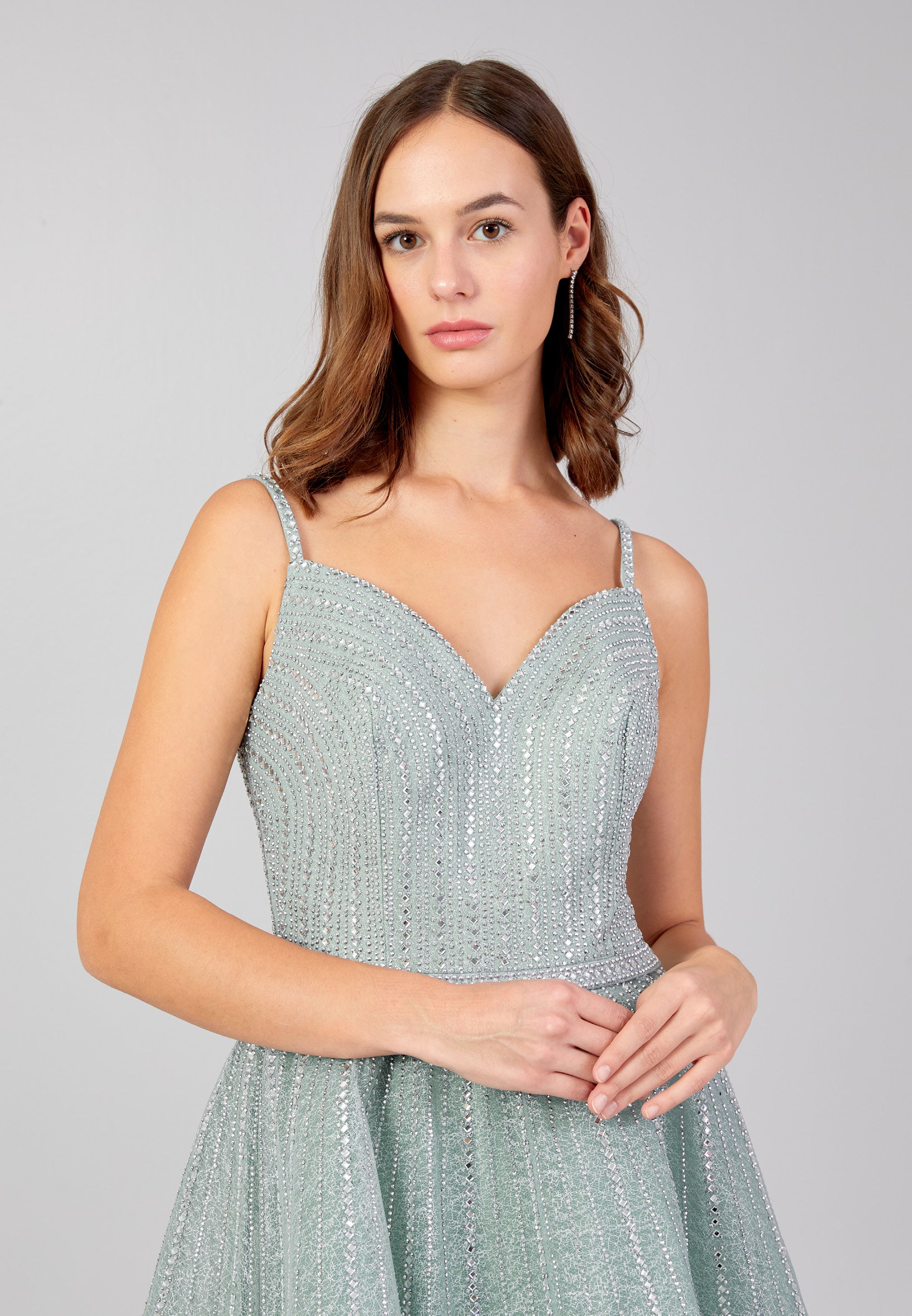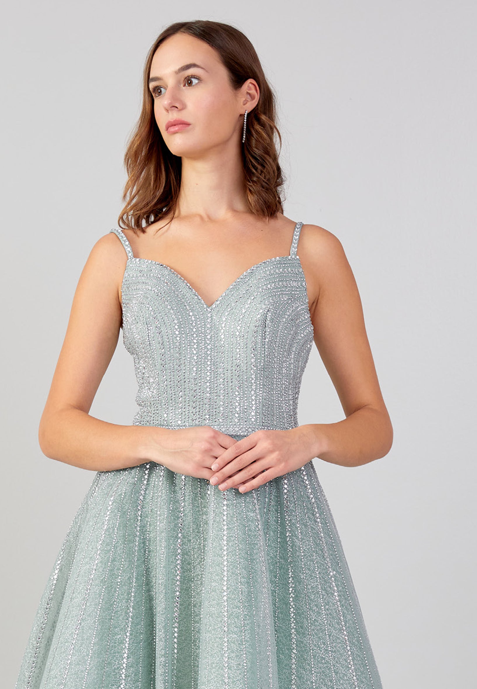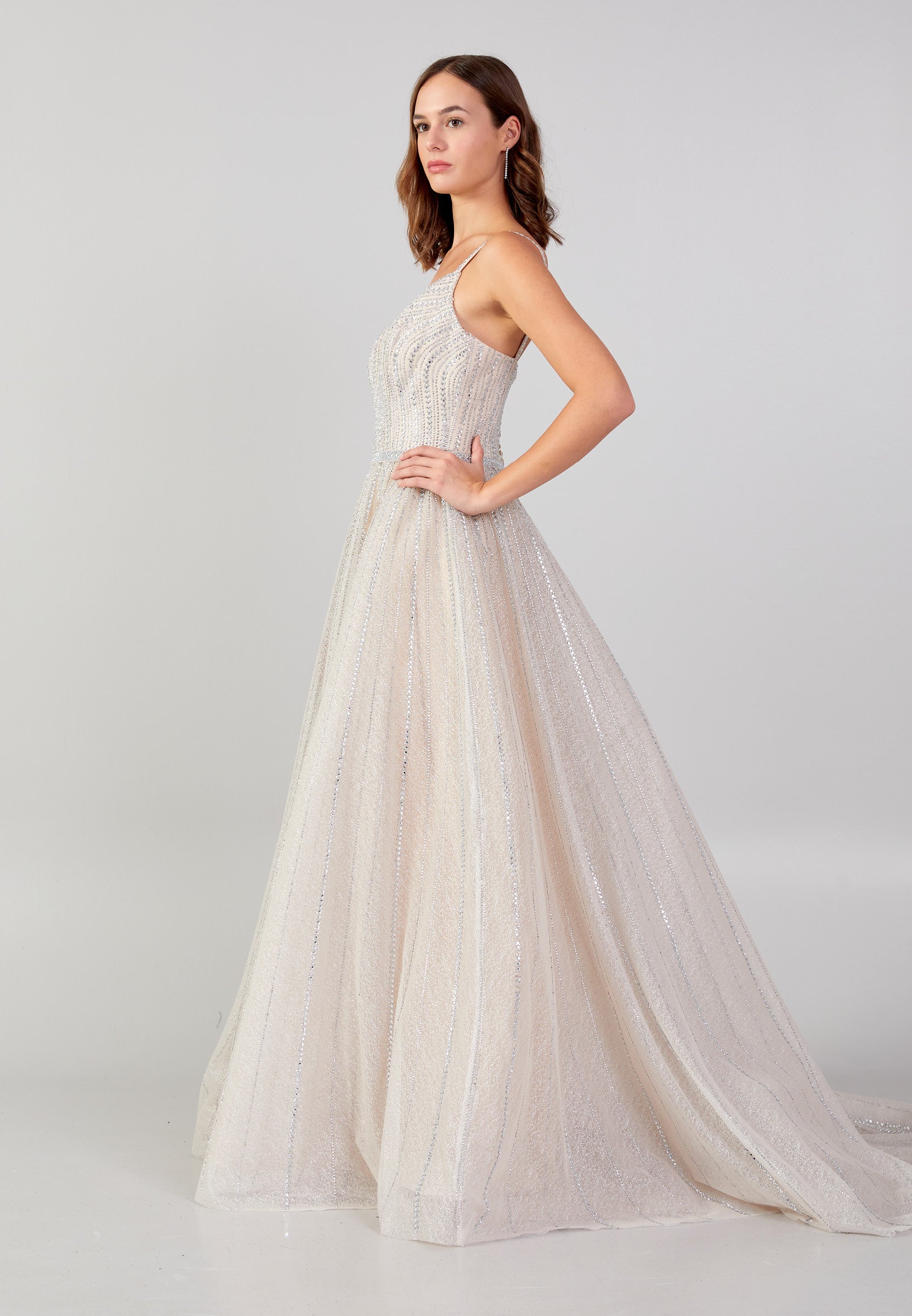 Sleeveless Maxi Tulle A - Line Regular Prom Dress ari4088