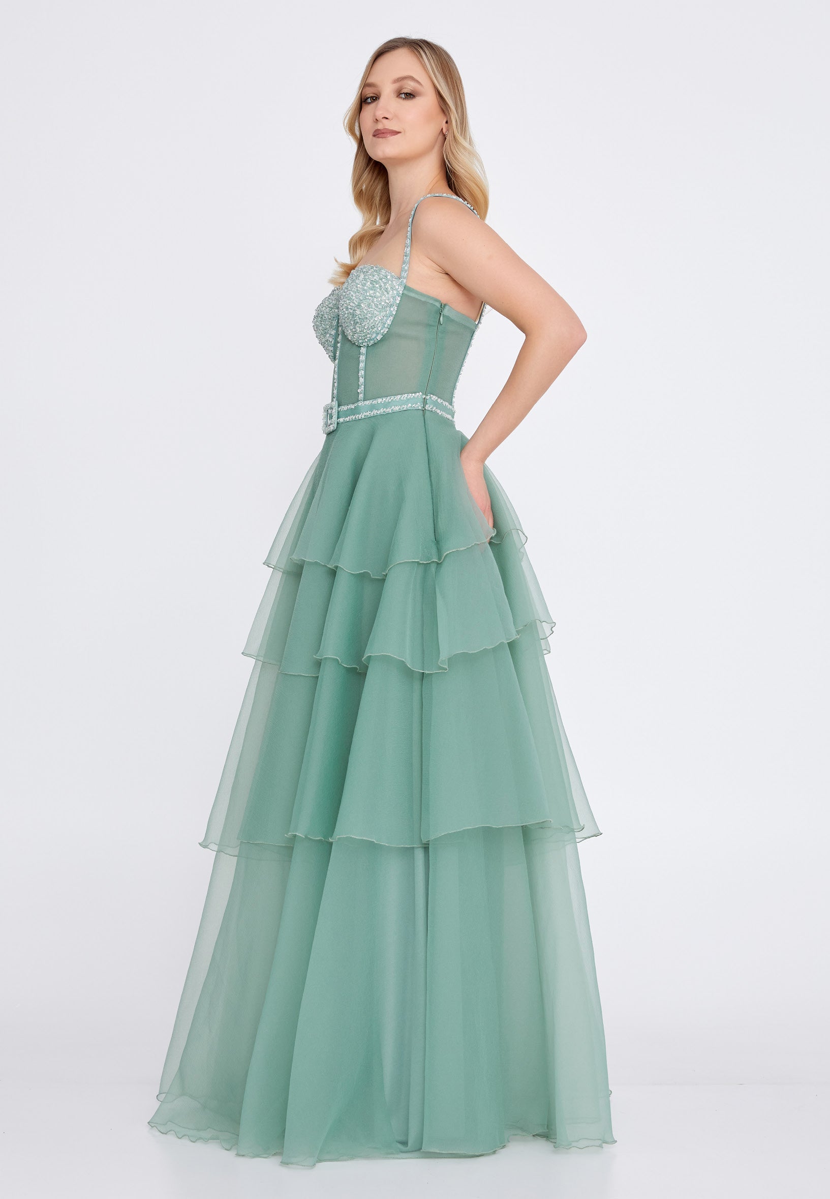 Sleeveless Maxi Tulle A - Line Regular Wedding Guest Dress omn324