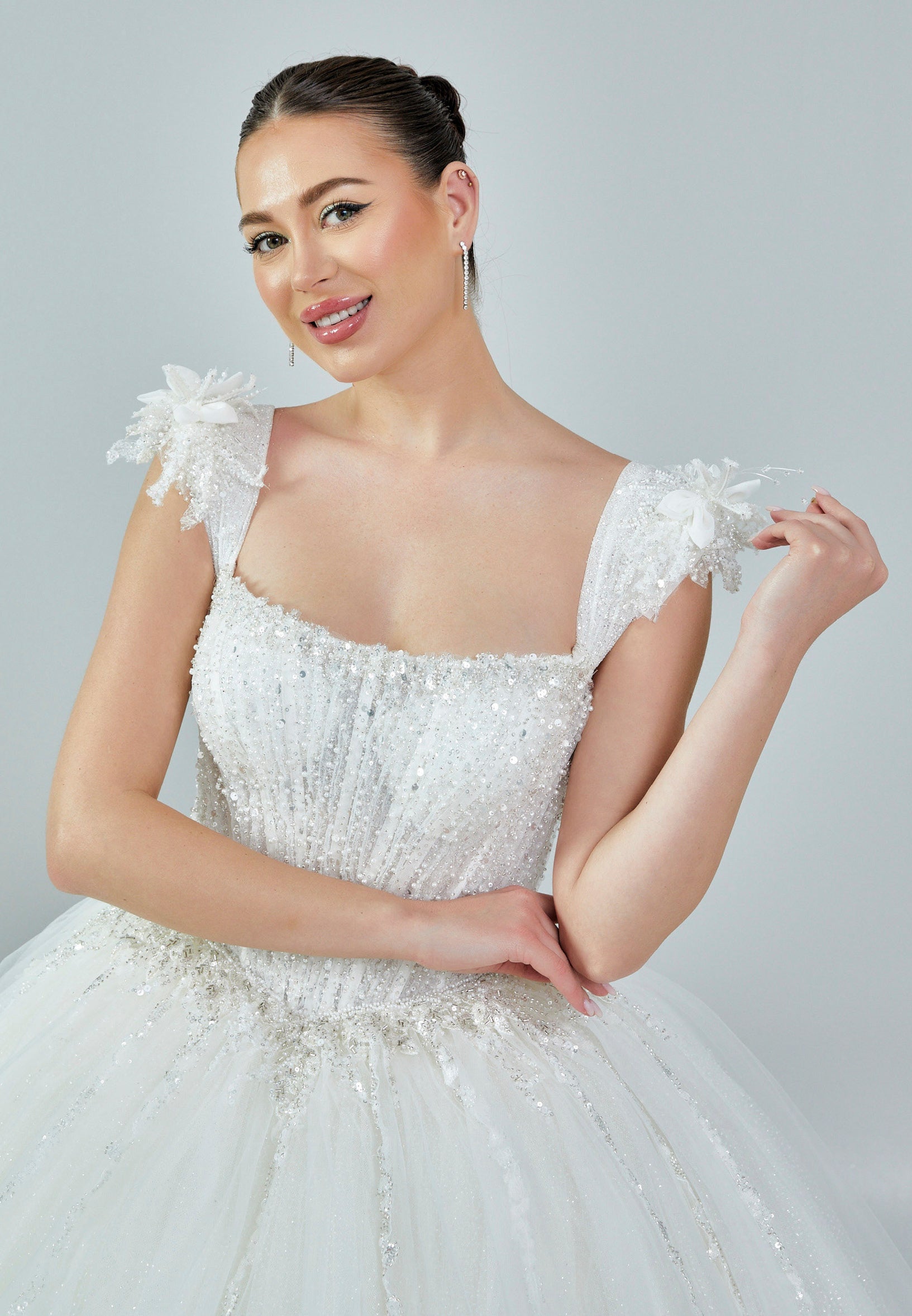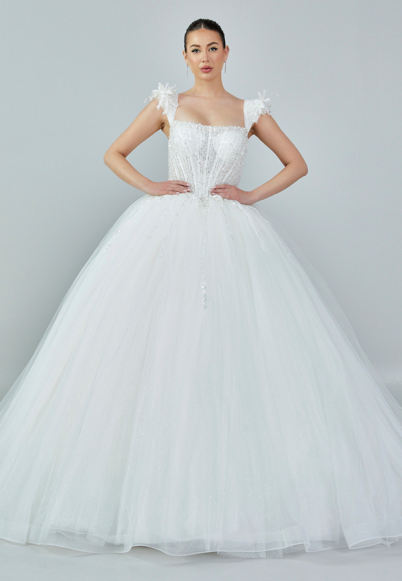 Sleeveless Maxi Tulle Regular Wedding Dress bnc8106