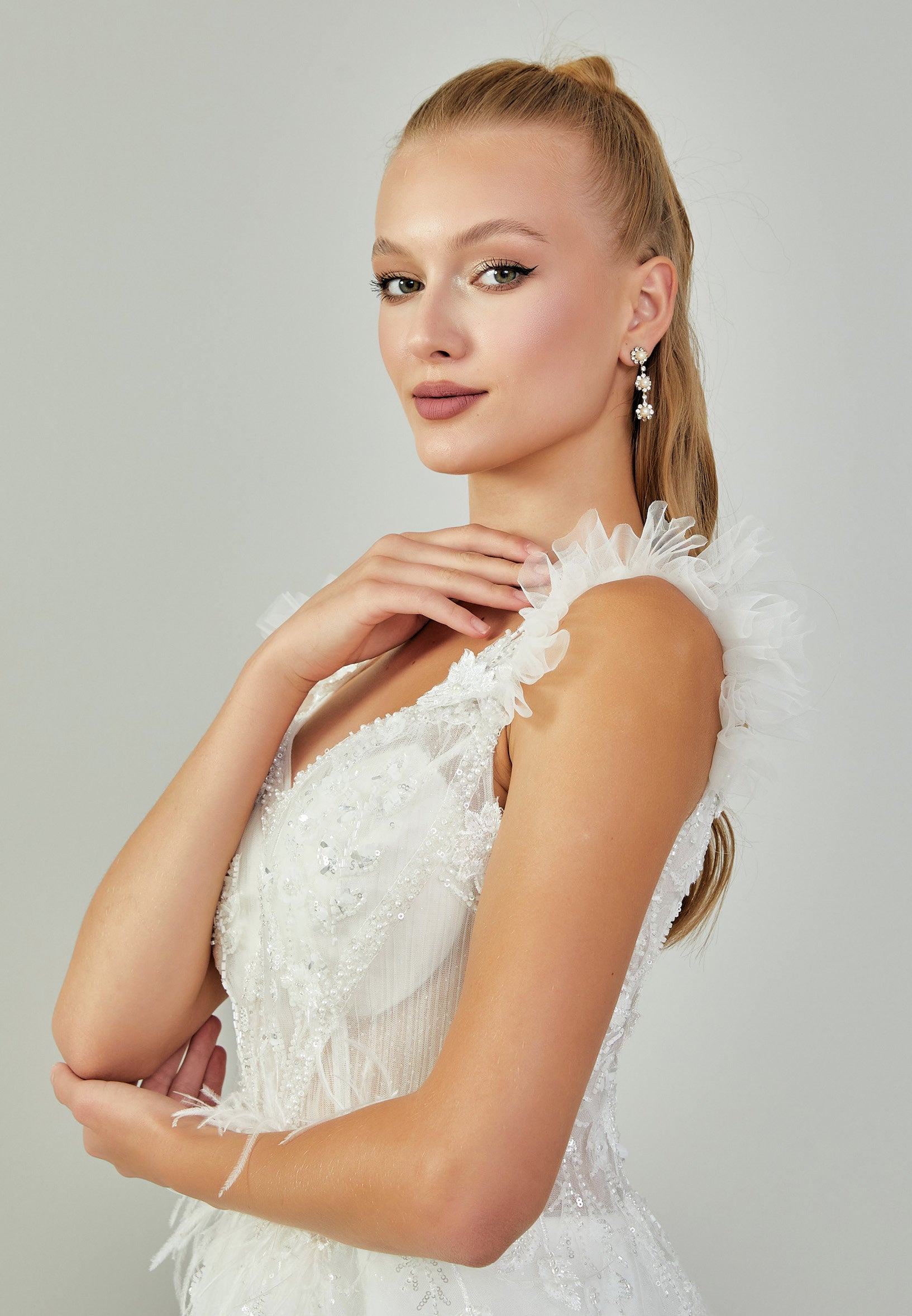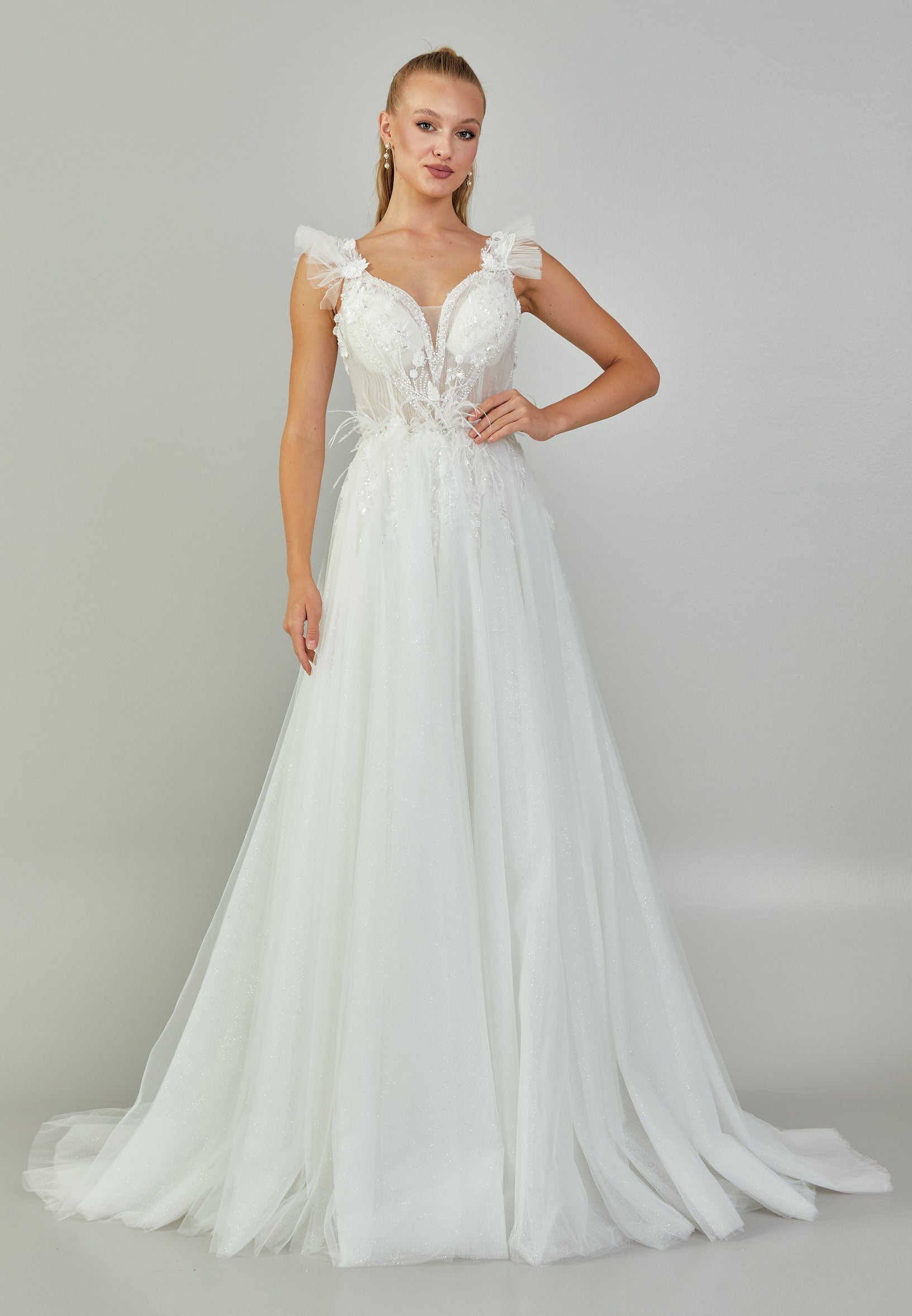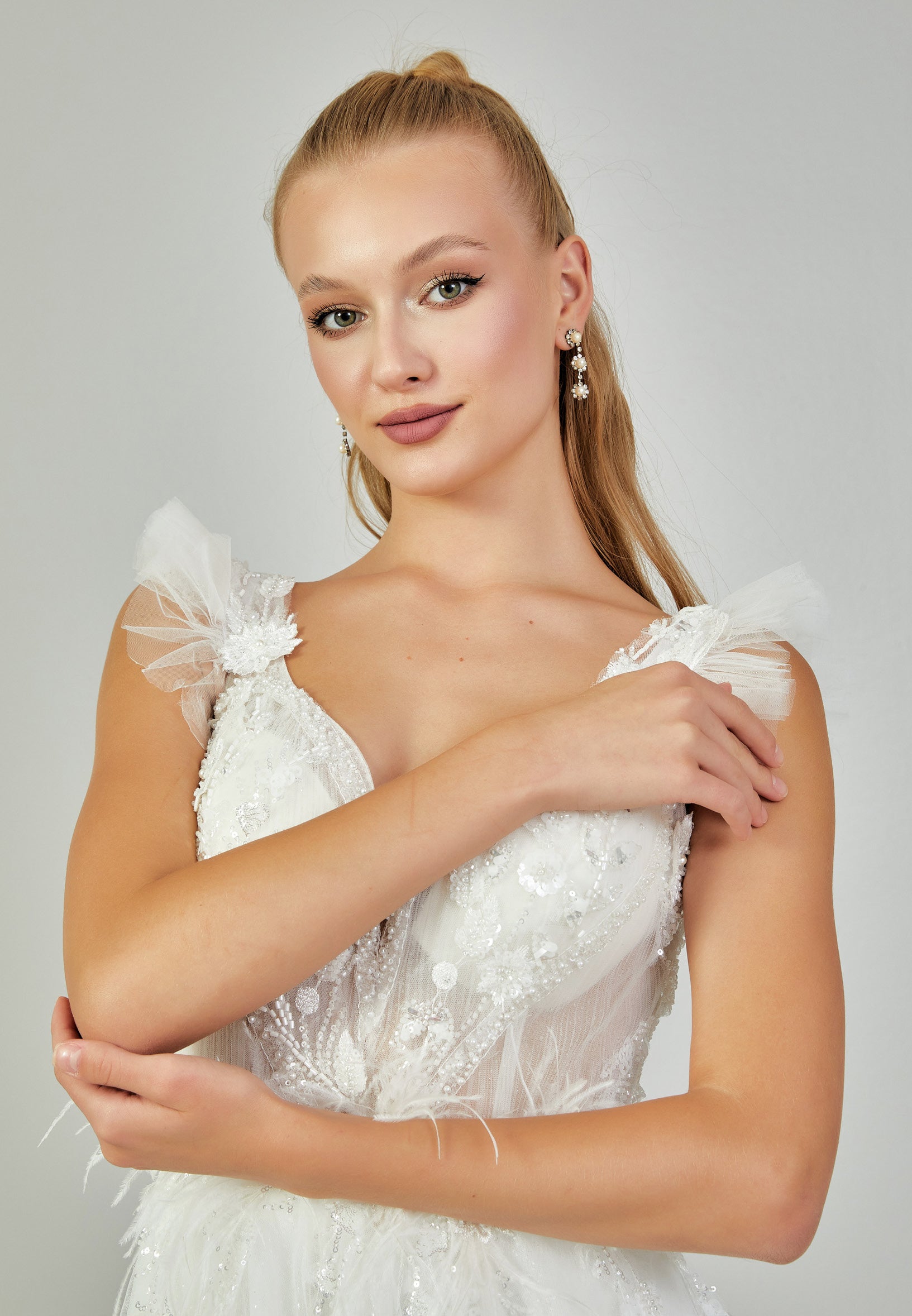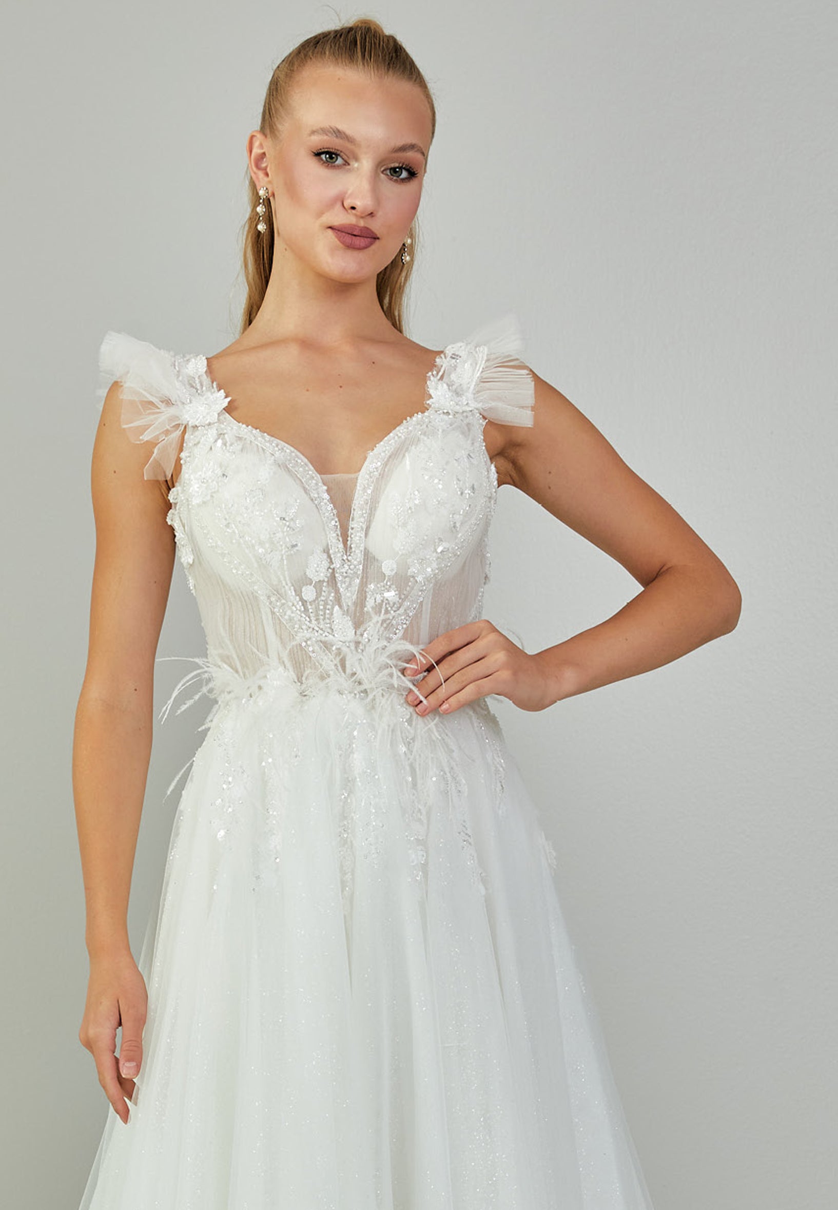 Sleeveless Maxi Tulle Regular Wedding Dress pts1682 Features