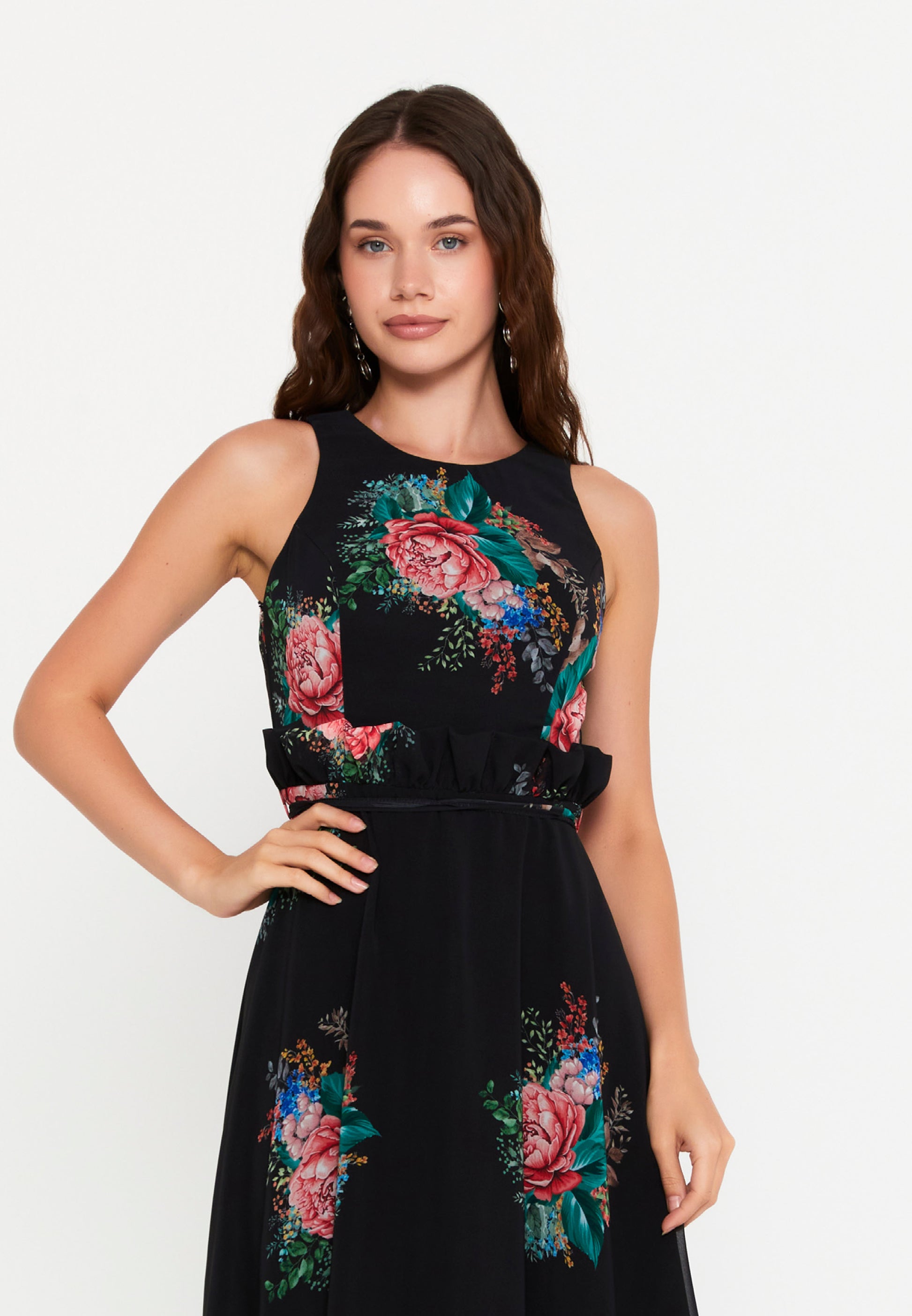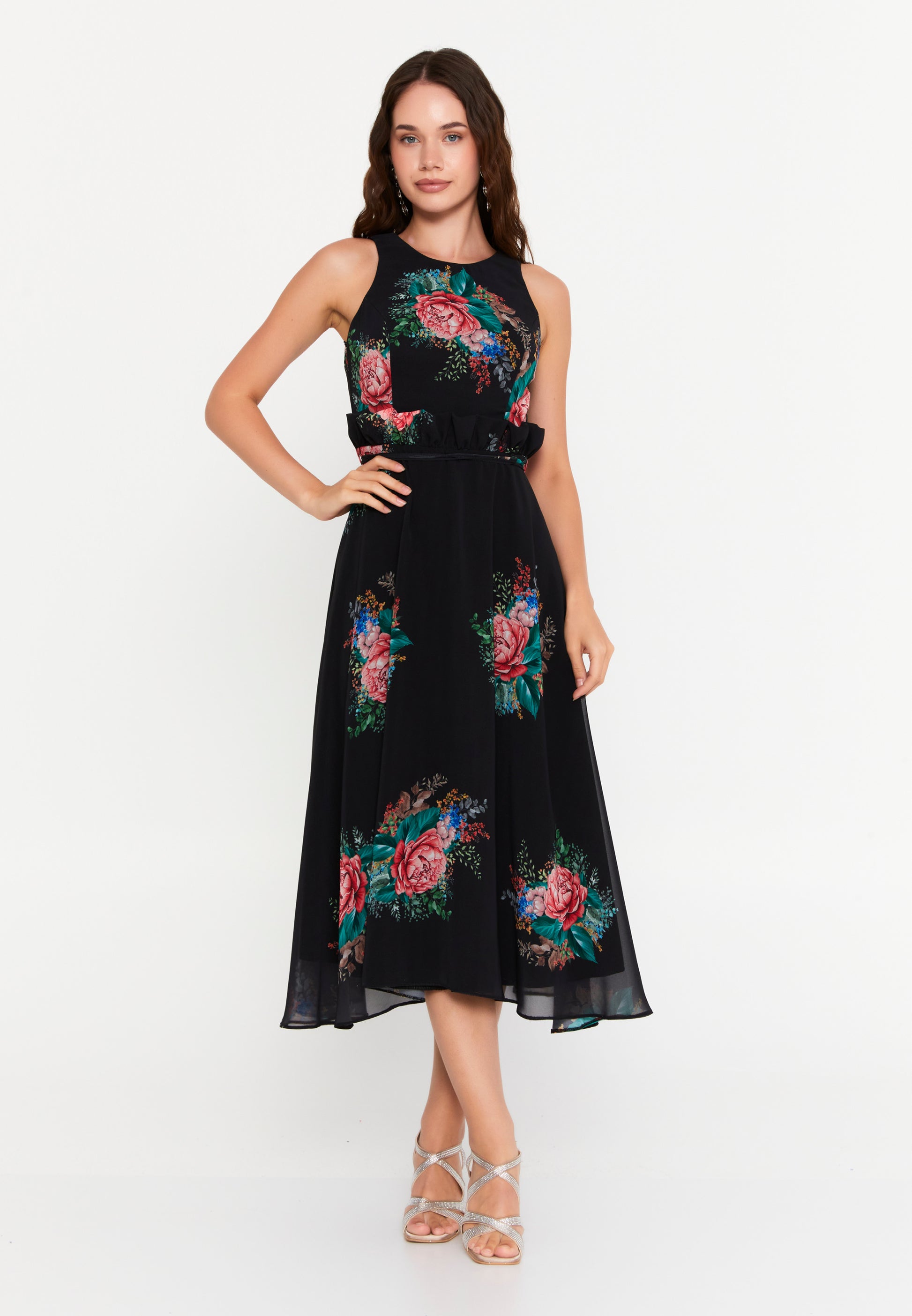 Sleeveless Midi Chiffon Column Regular Evening Dress esc2132 Features