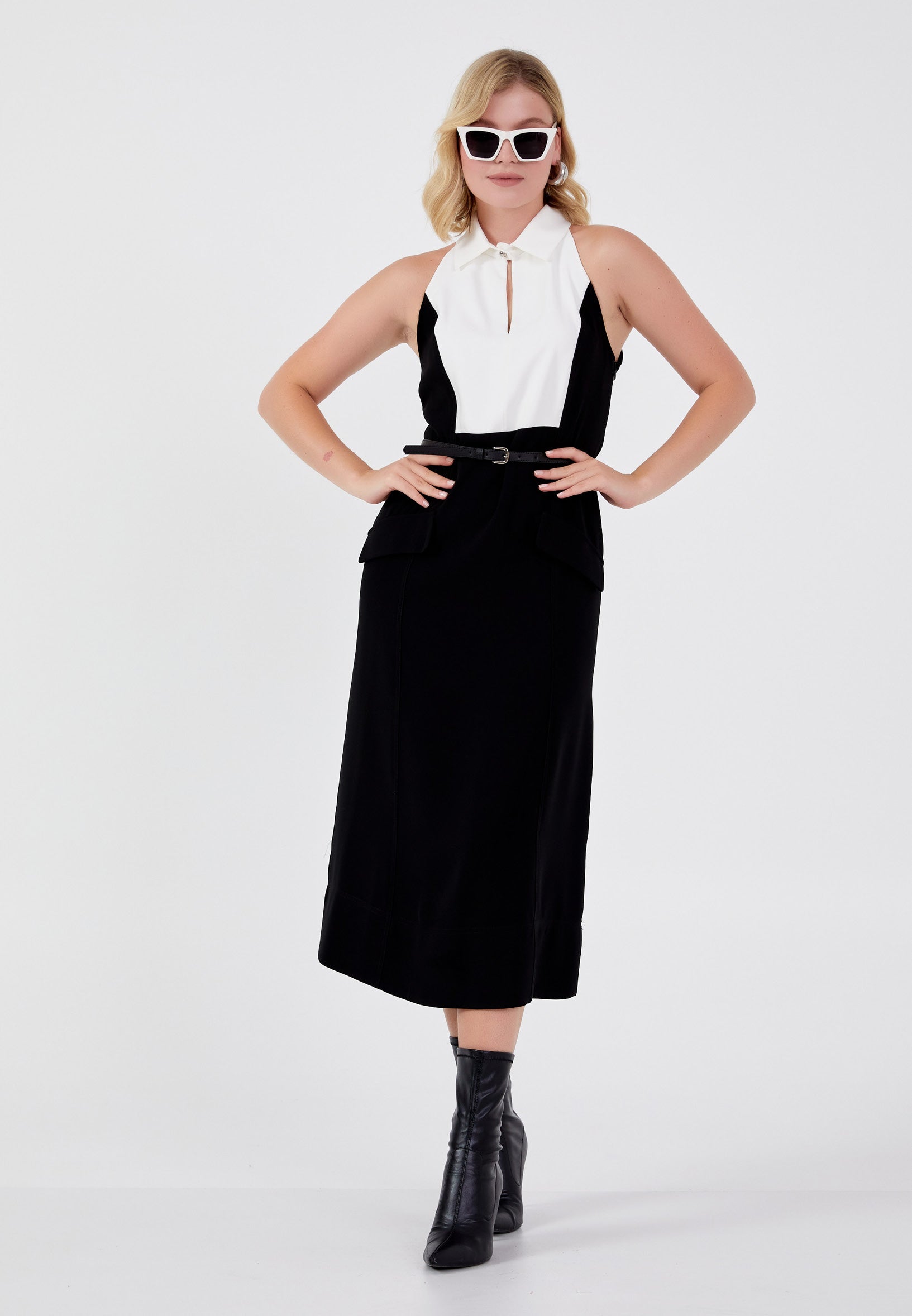 Sleeveless Midi Viscose Column Regular Casual Dress ber25k5131 Features