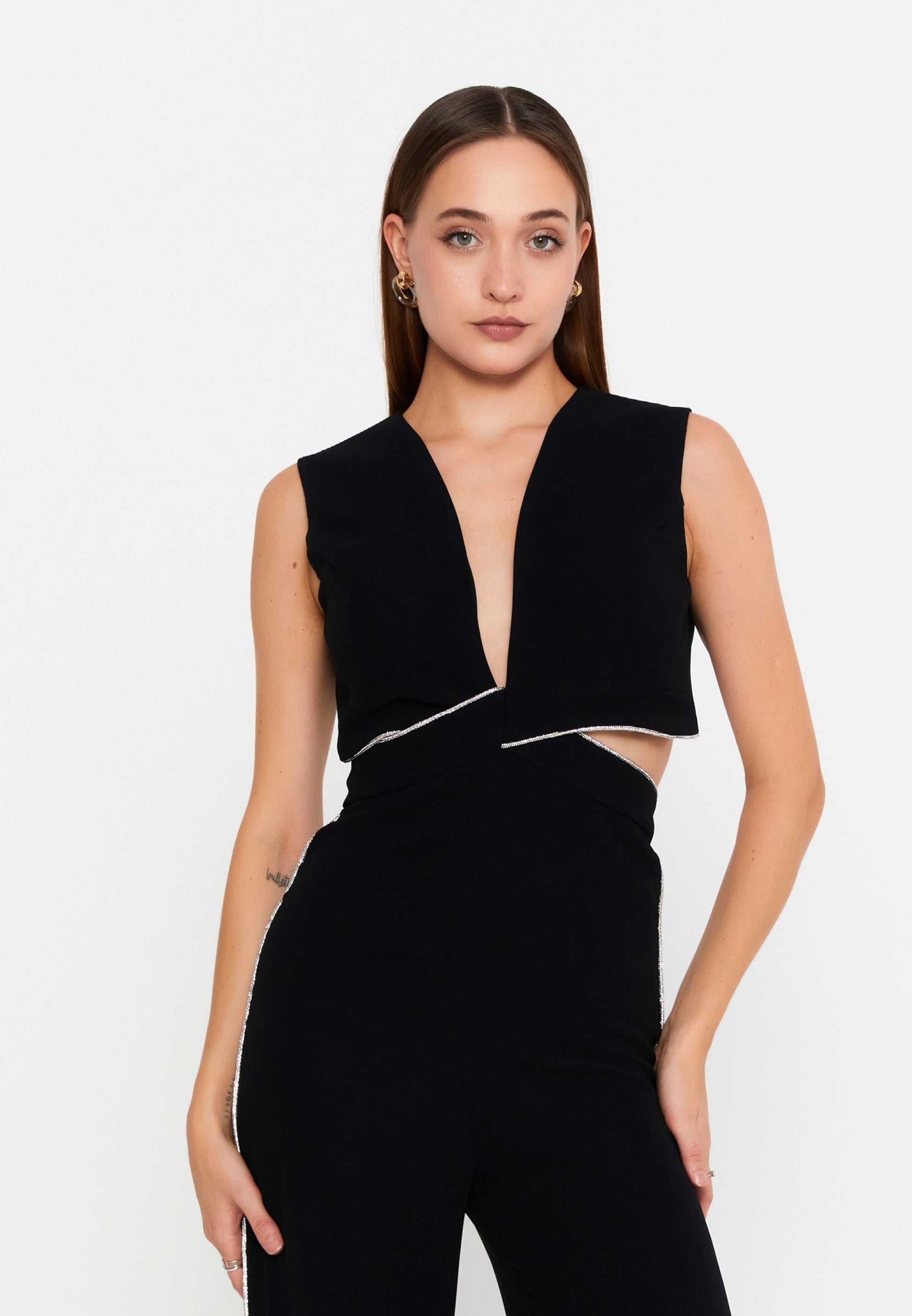 Sleeveless Viscose Regular Fit Regular Evening Jumpsuit srf8163
