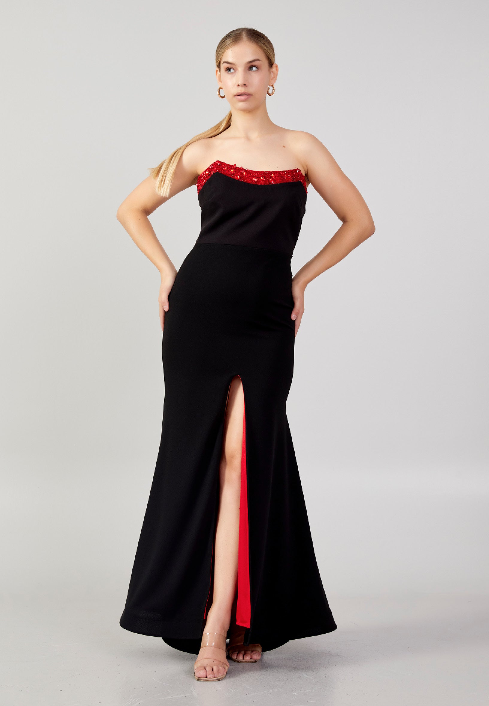 Strapless Maxi Crepe Mermaid Plus Size Evening Dress mtn88132-1 Features