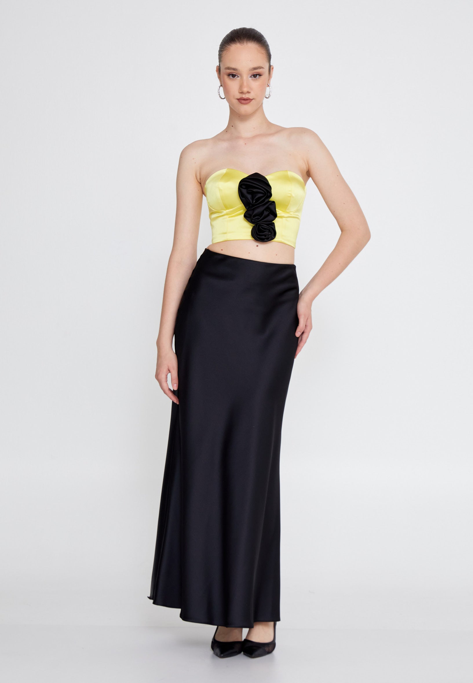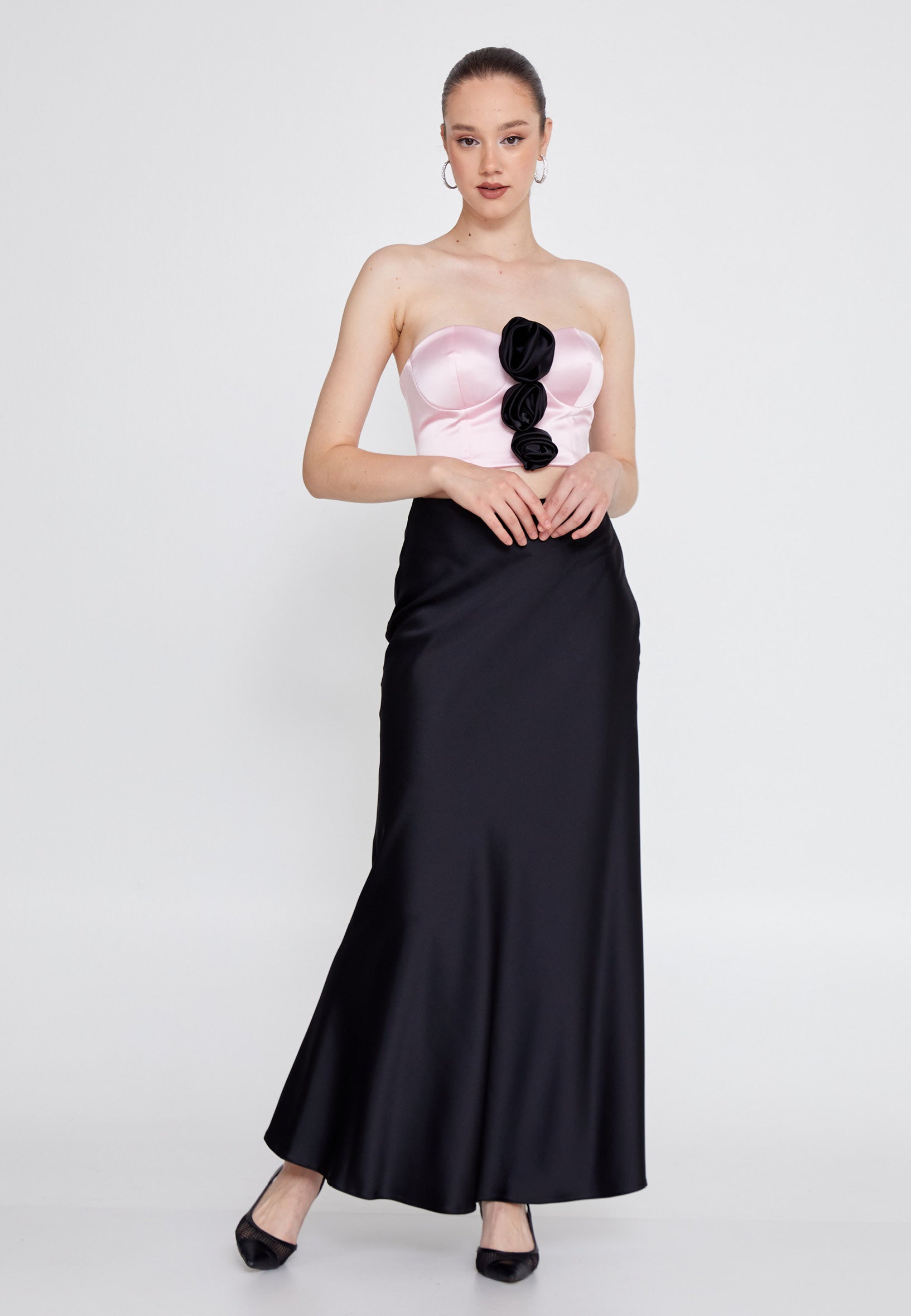 Strapless Maxi Satin Column Regular Wedding Guest Dress ses2972