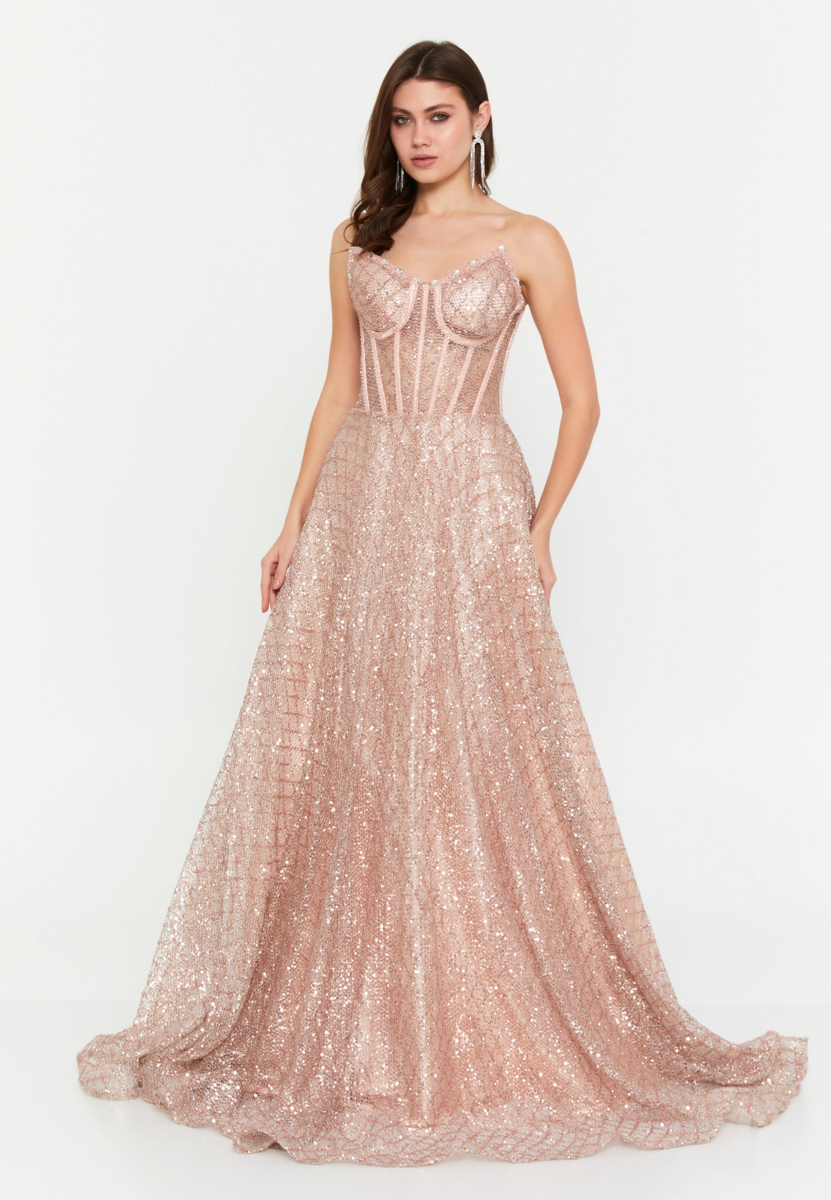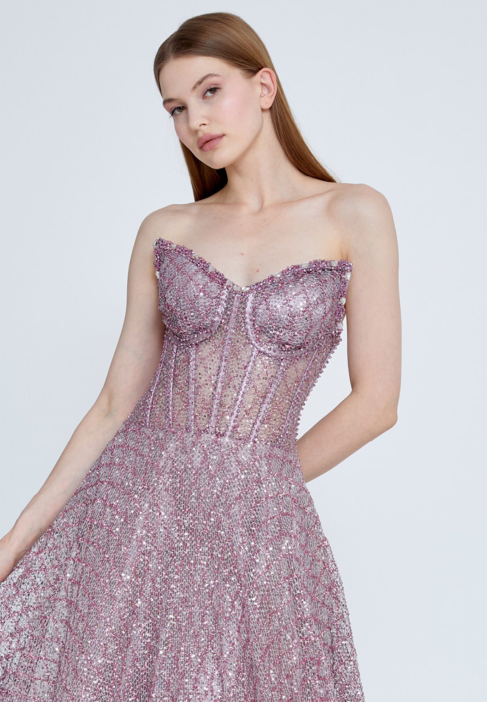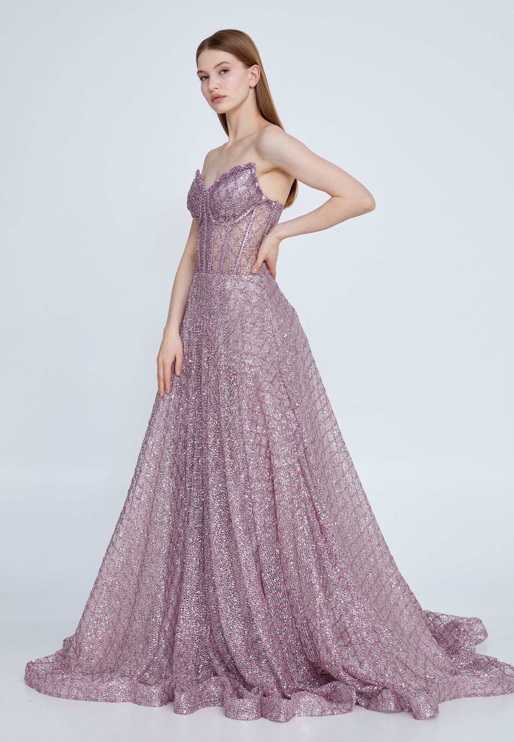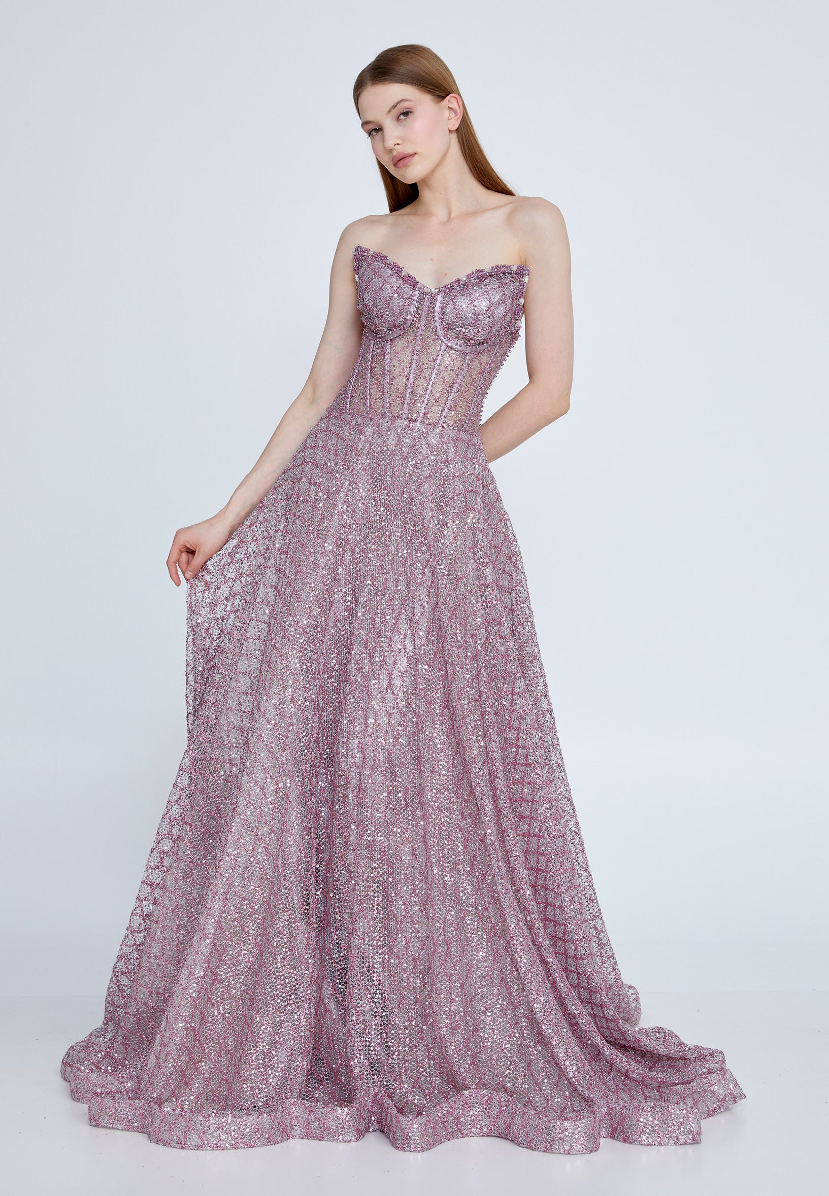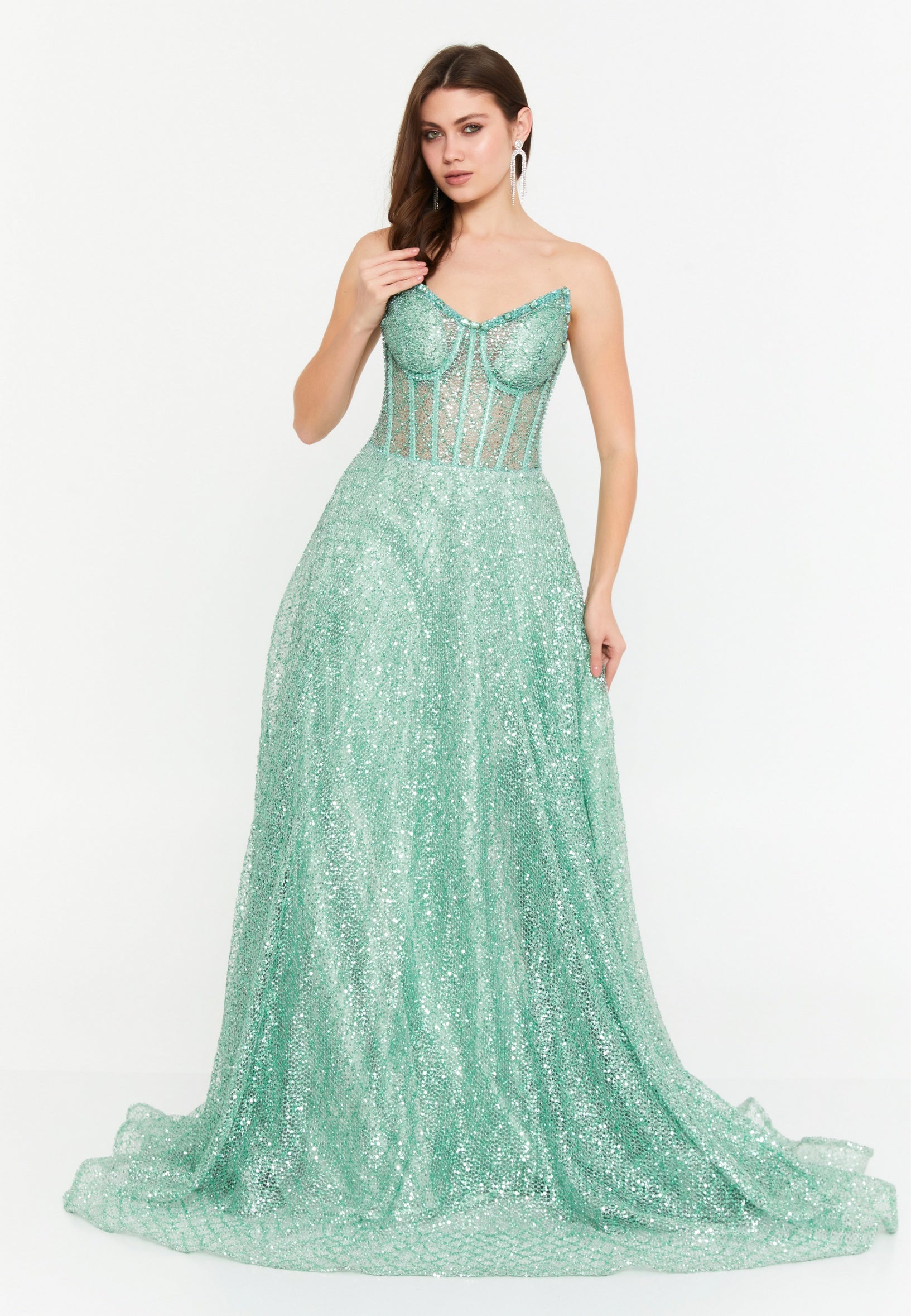 Strapless Maxi Sequin A - Line Regular Prom Dress aln1651 Features