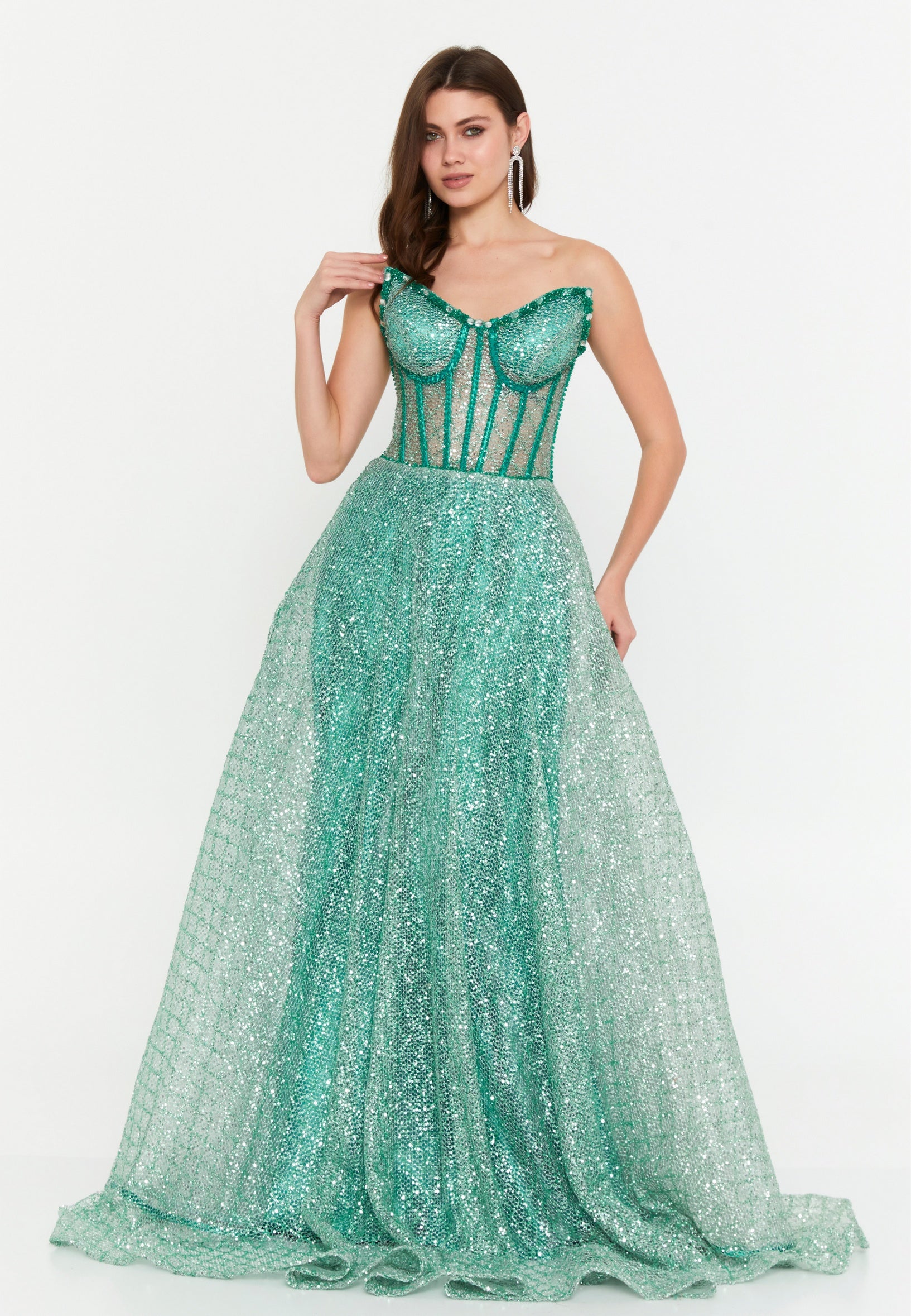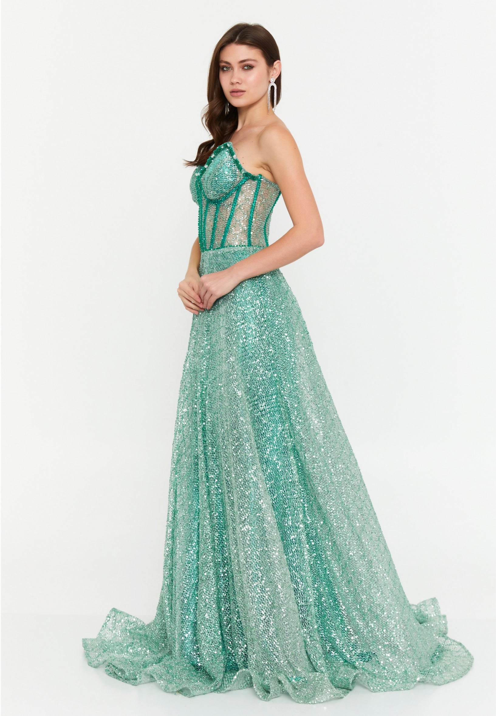 Strapless Maxi Sequin A - Line Regular Prom Dress aln1651