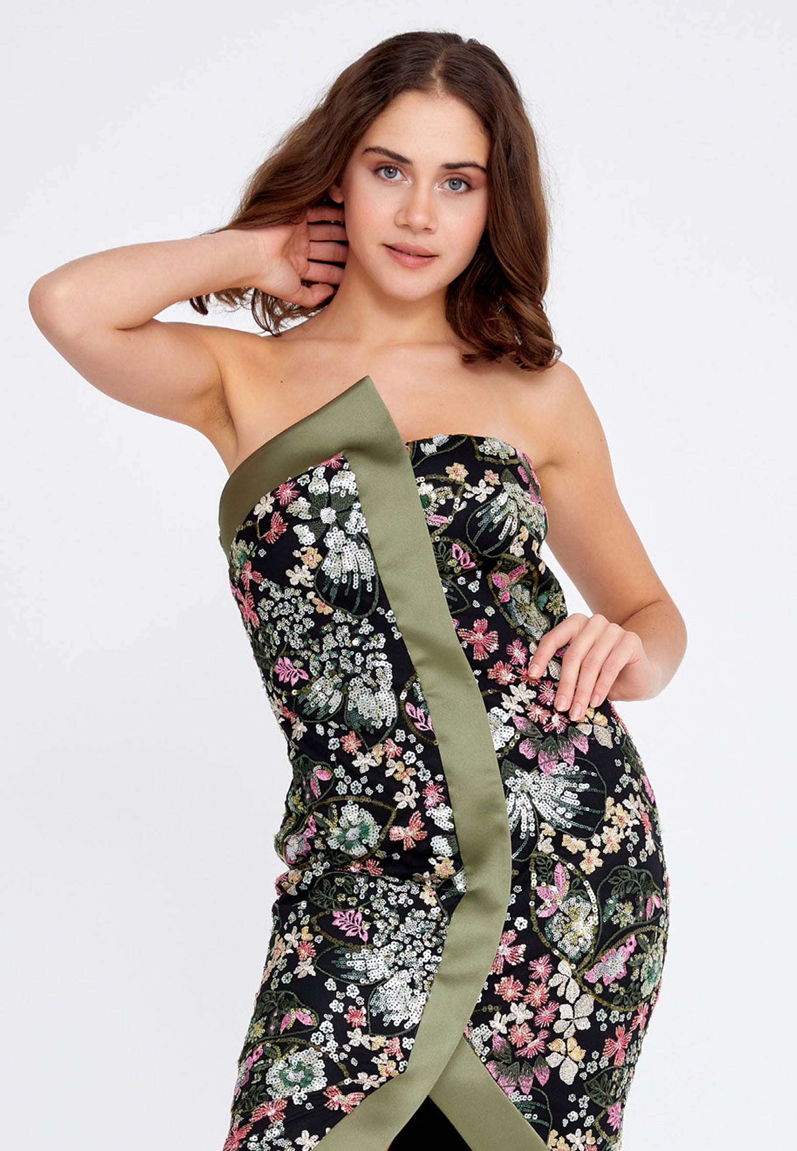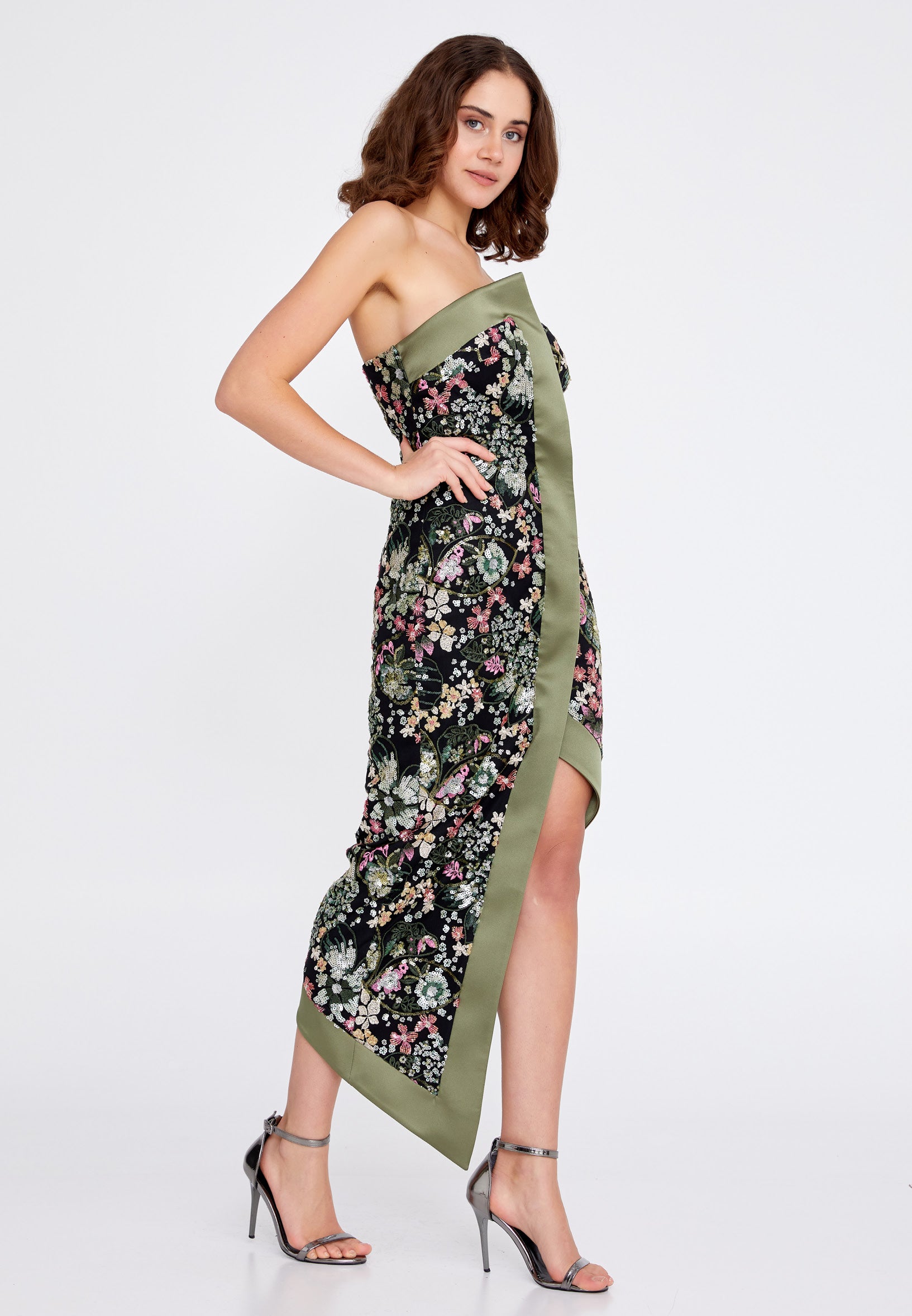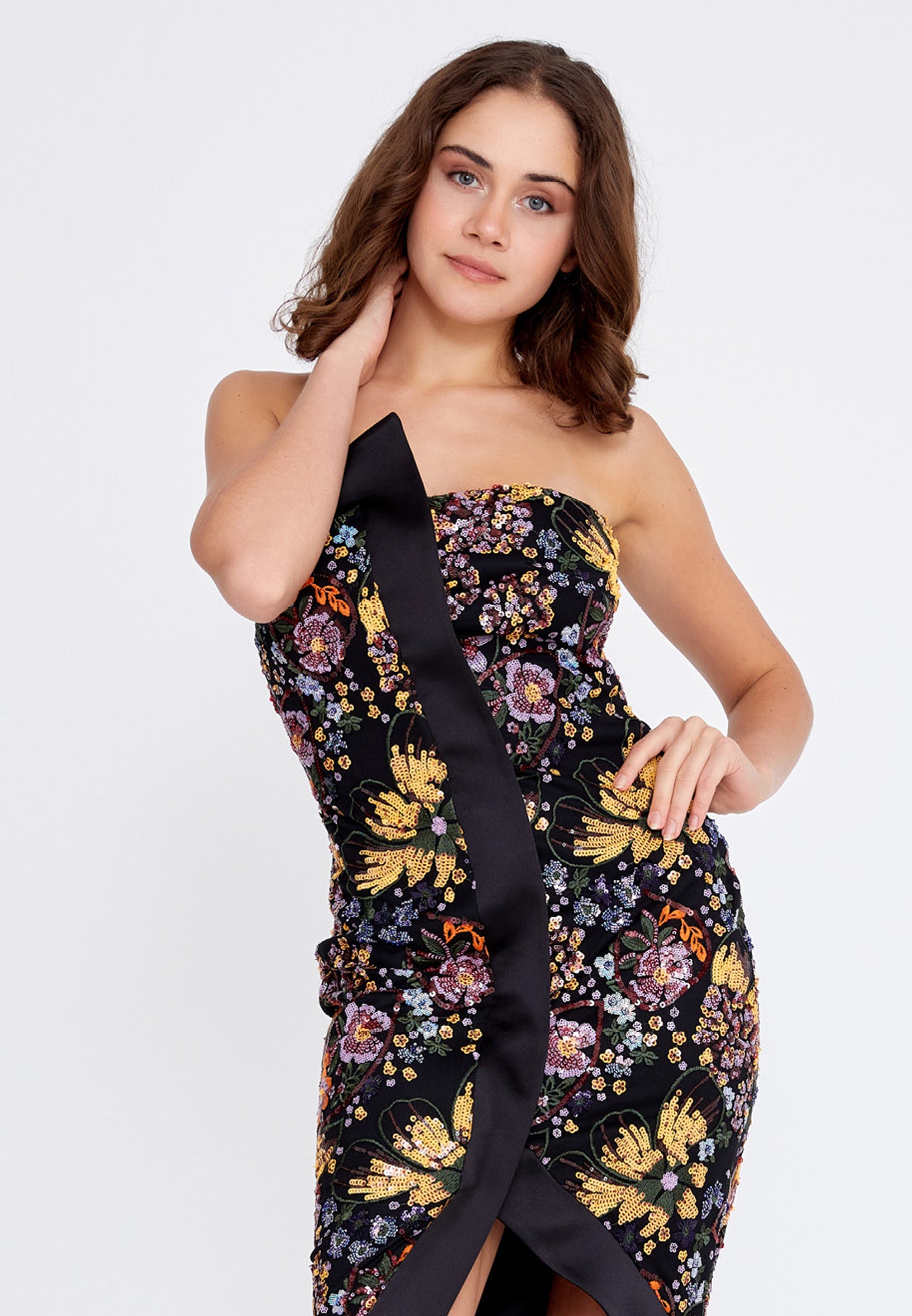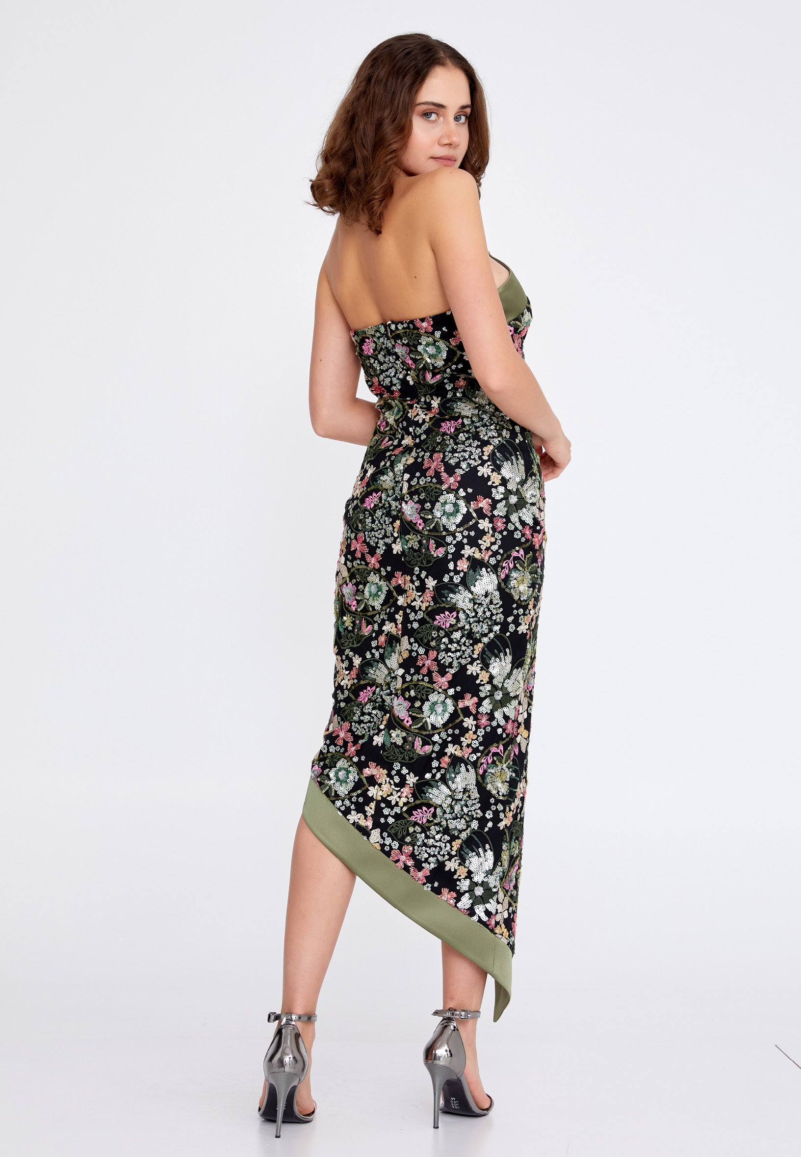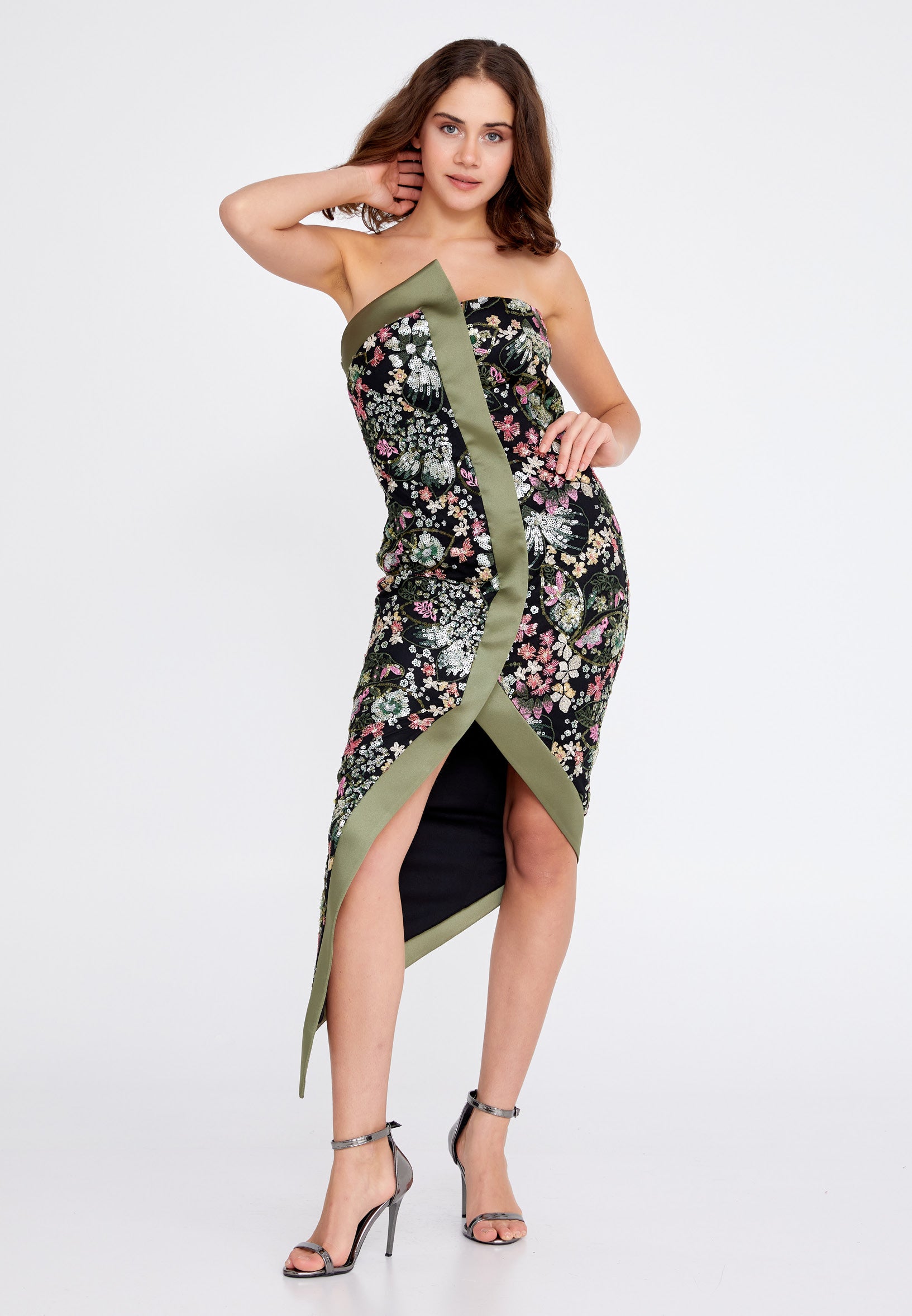 Strapless Midi Sequin Column Regular Evening Dress ren7012